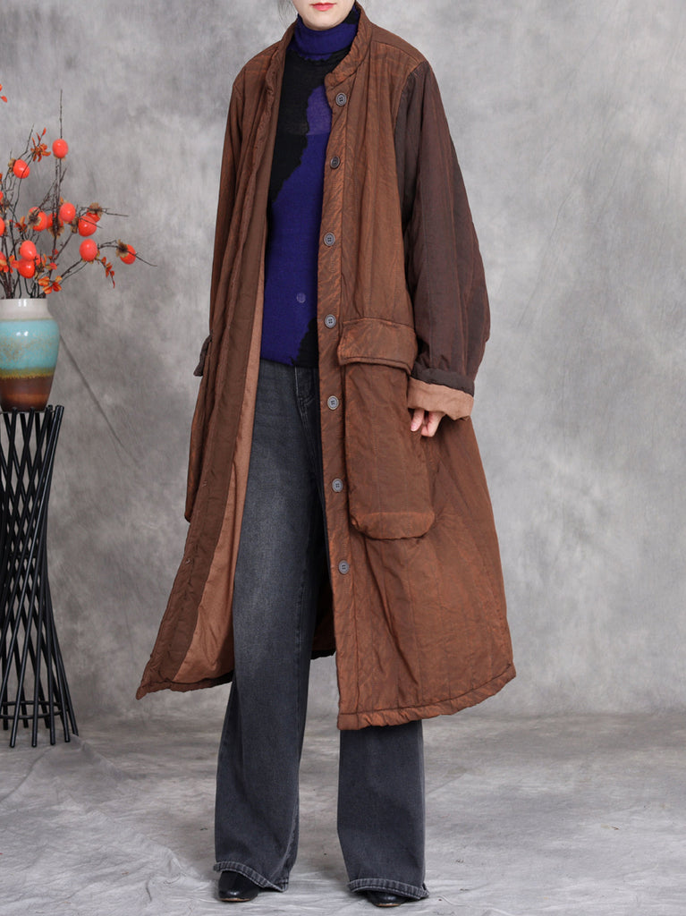 Mulheres Vintage Solid Corduroy Long Winter Coat