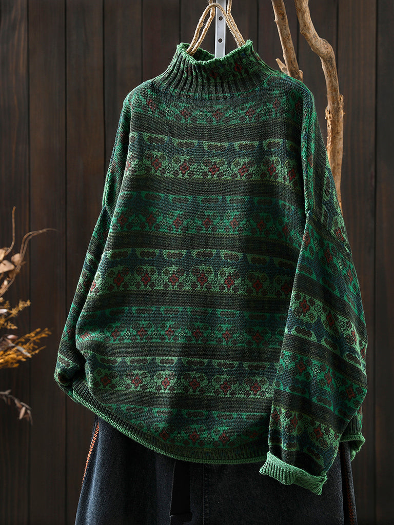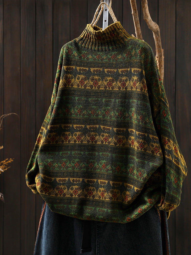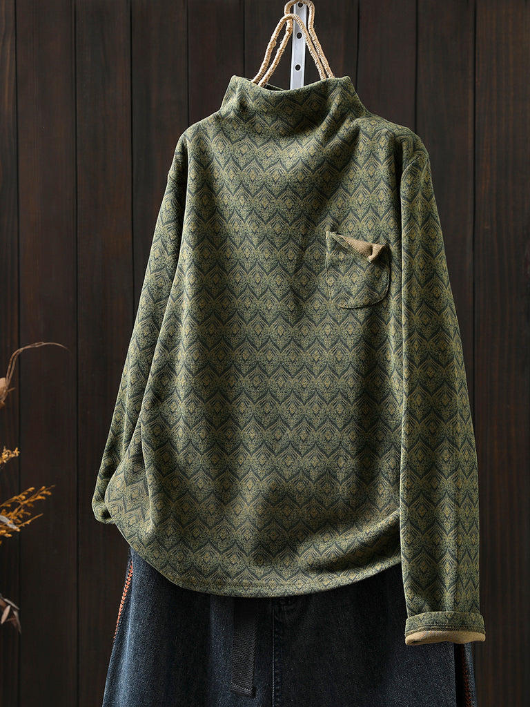 Blusa feminina vintage de algodão com gola alta e listras outonais.
