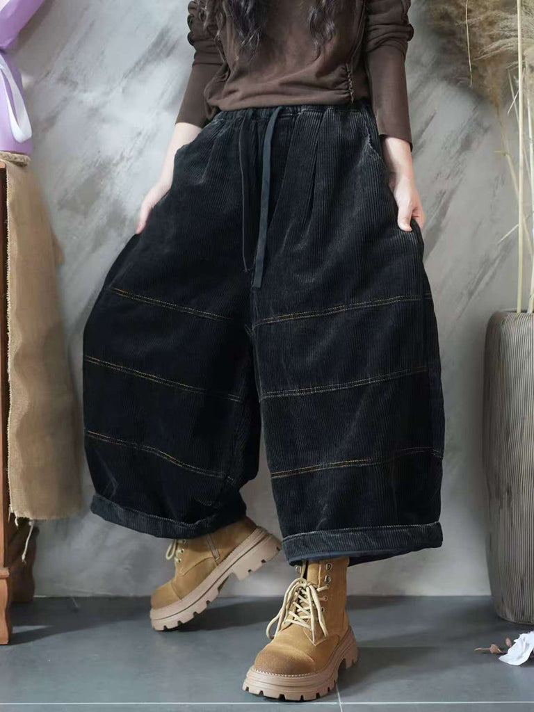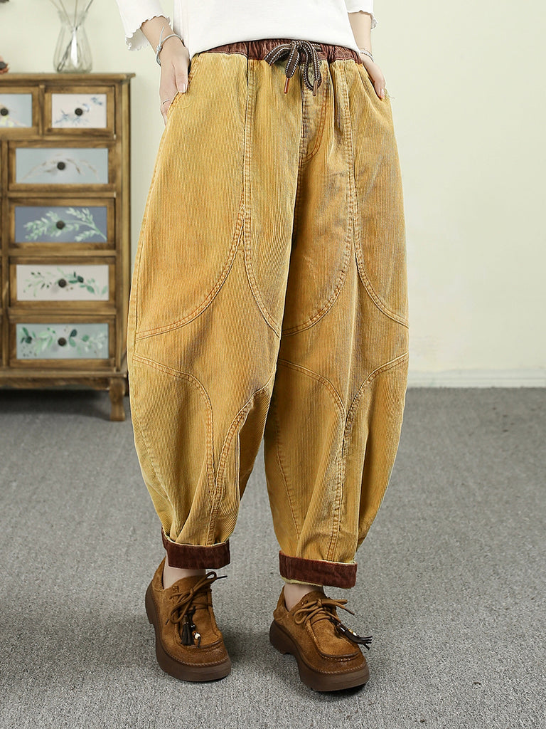 Calça Harém Croduroy Feminina Outono Retro Cor Pura