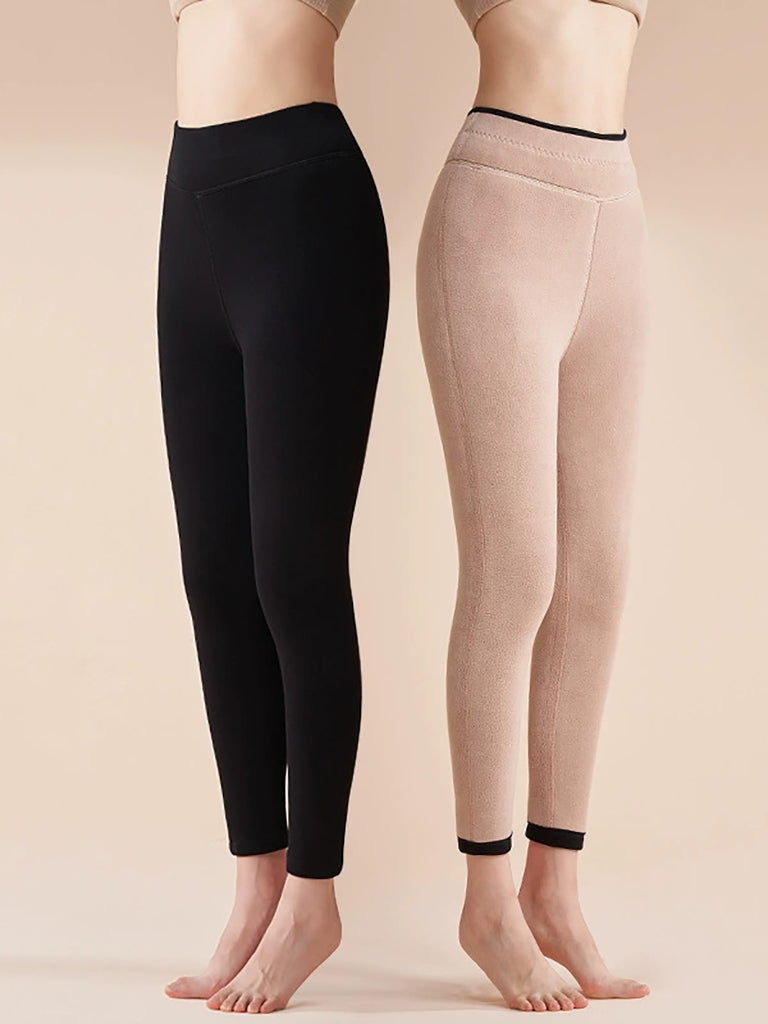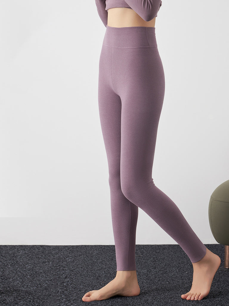 Leggings femininas quentes de outono com forro de lã de cor pura