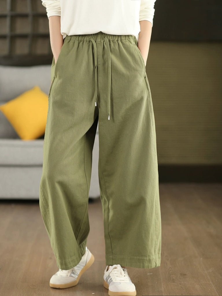 Women Autumn Vintage Solid Ramie Loose Bloomers