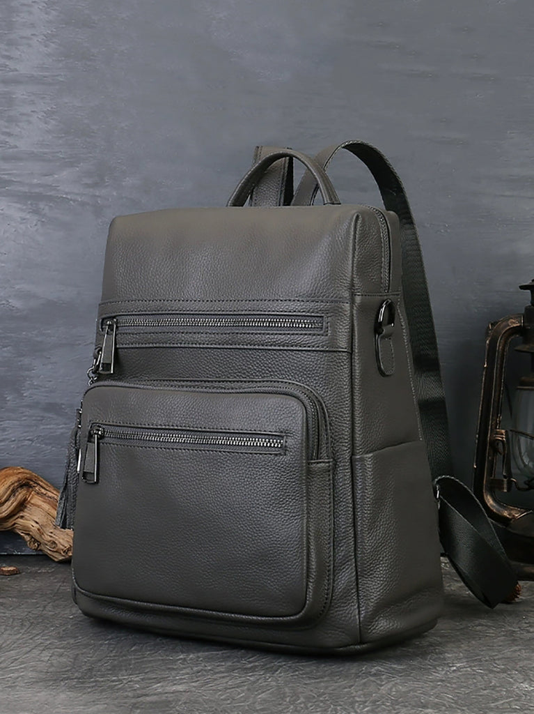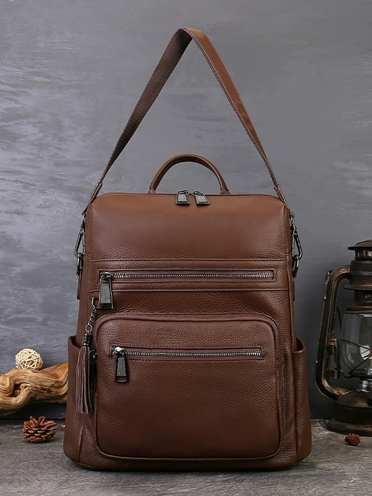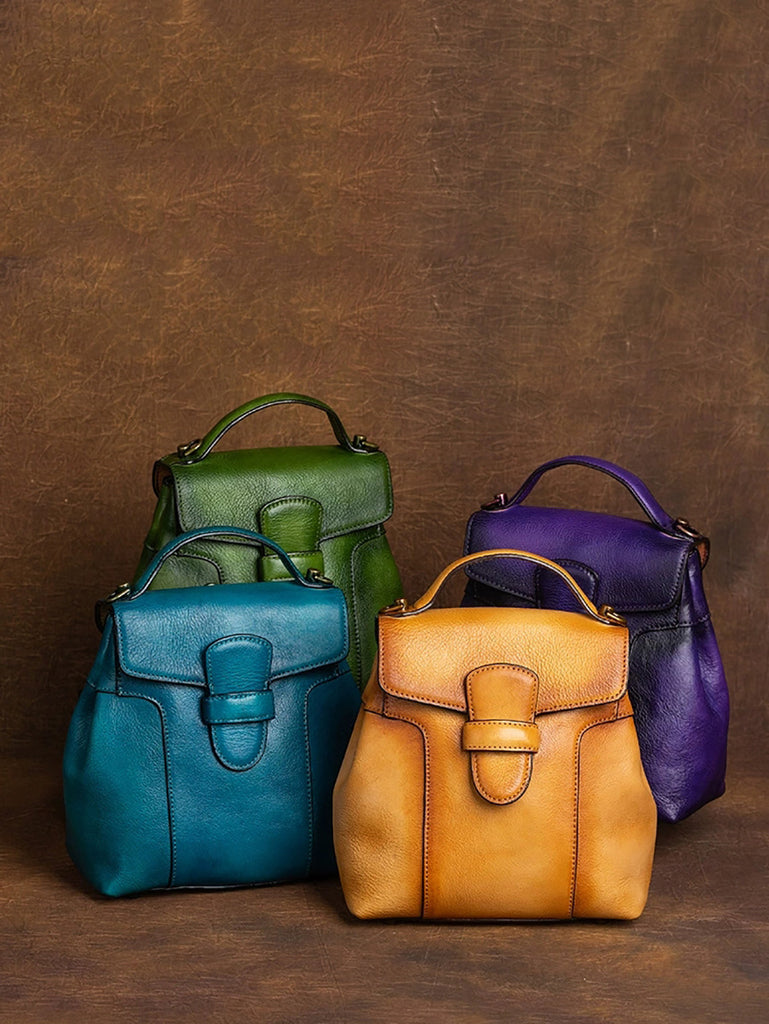 Mochila feminina vintage de couro genuíno com grande capacidade.