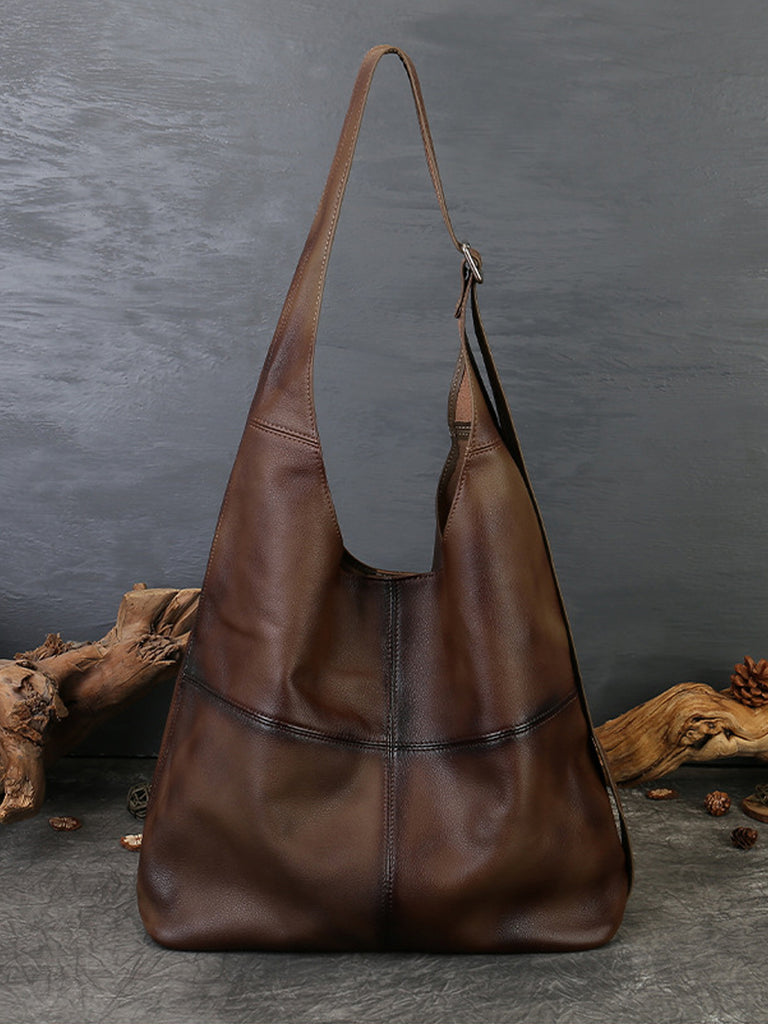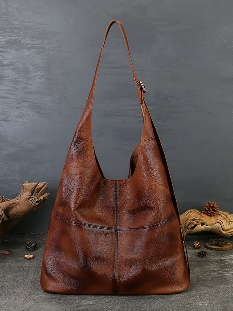 Bolsa de ombro feminina vintage de couro com grande capacidade