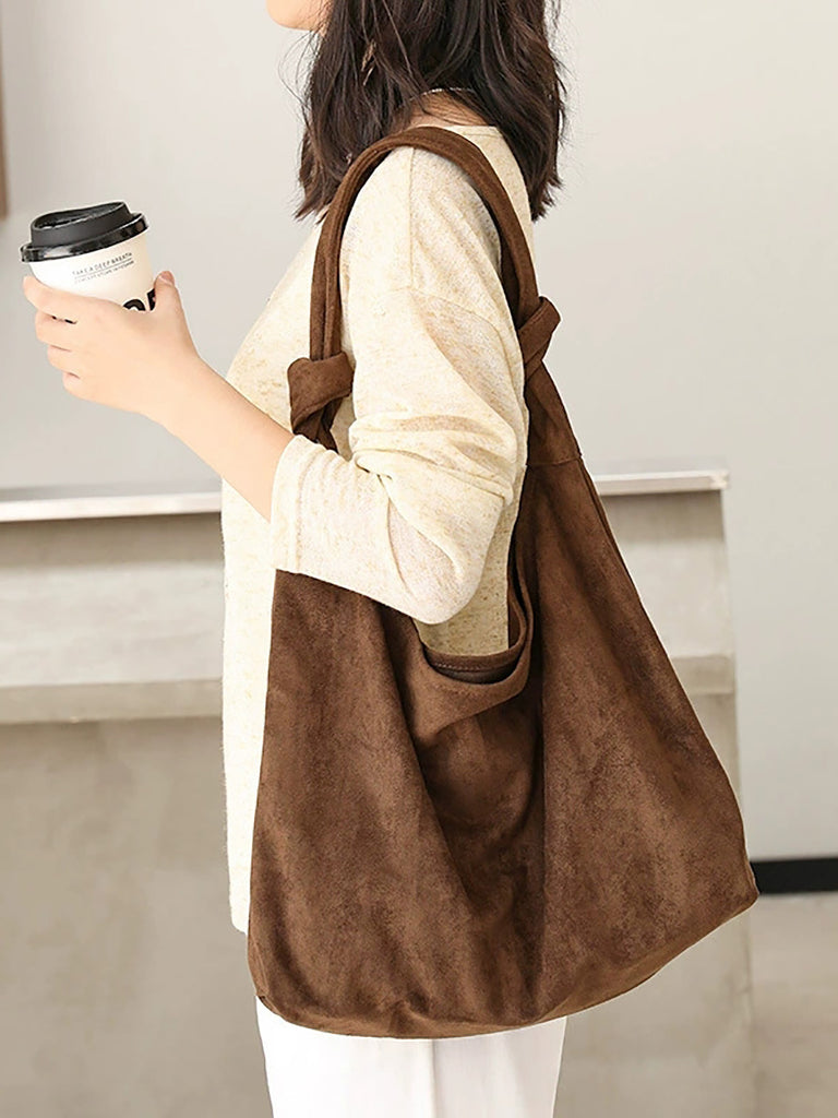 Bolsa de ombro feminina retrô de grande capacidade em camurça.