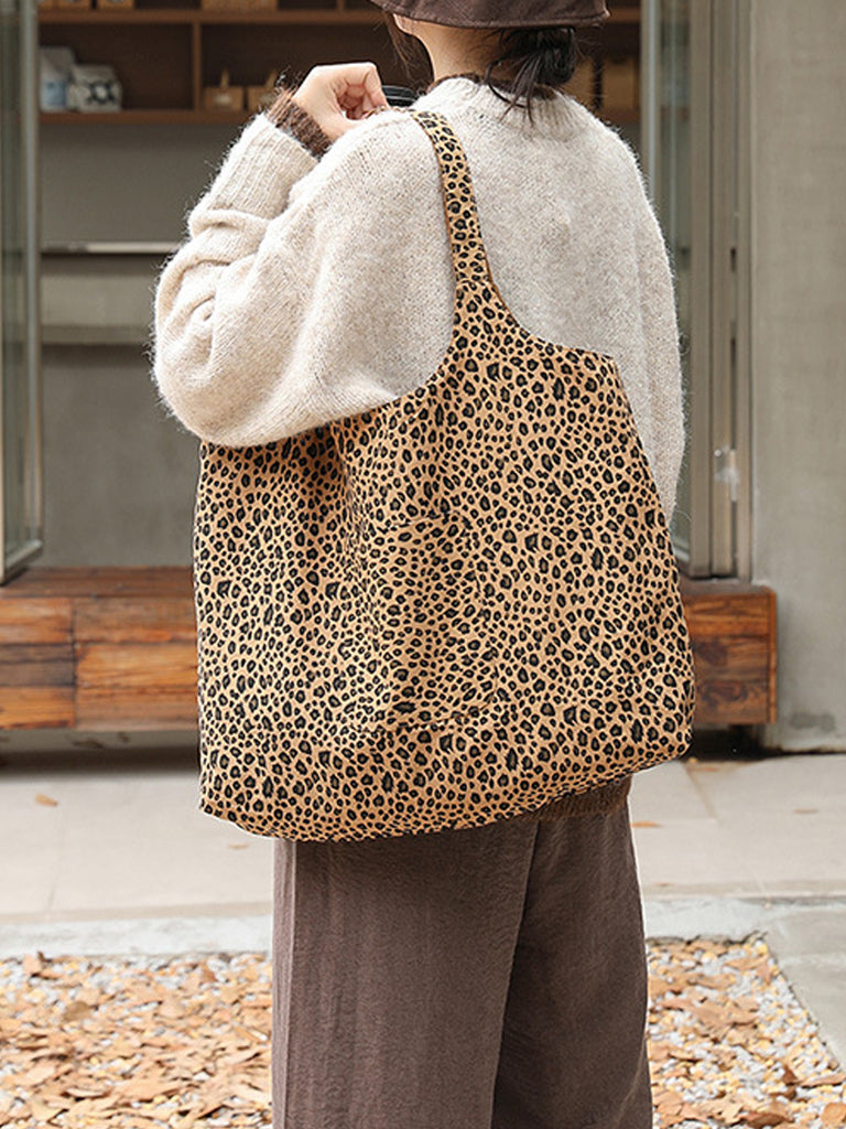 Bolsa de ombro feminina retrô com estampa de leopardo em camurça e dois lados.
