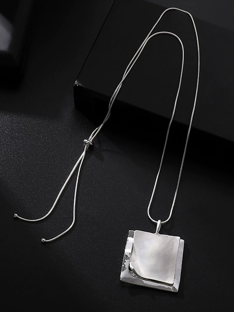 Colar longo pandent de liga quadrada da moda