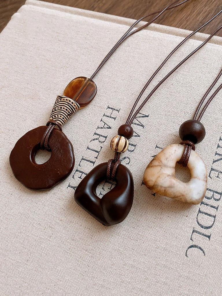 Colar feminino de liga de madeira e resina geométrica Artsy