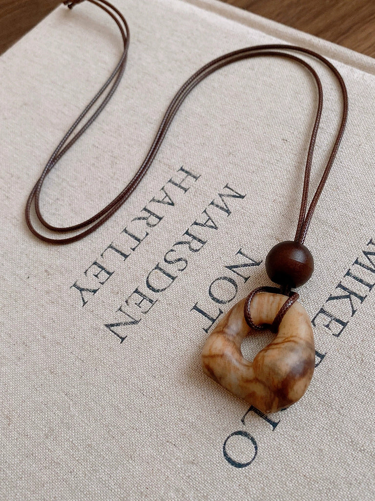 Colar pandent de madeira com folha de liga vintage