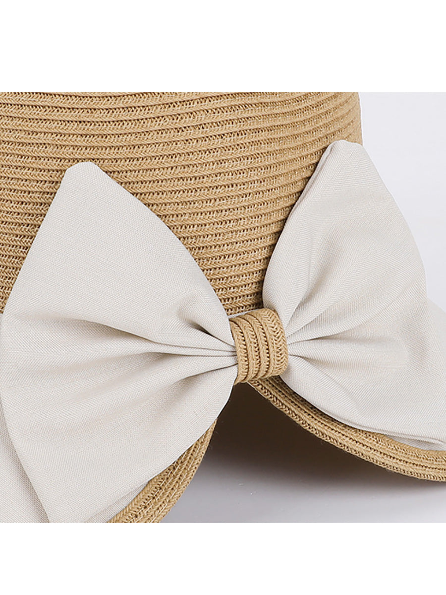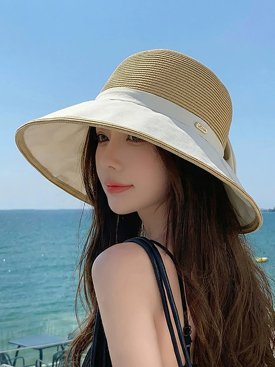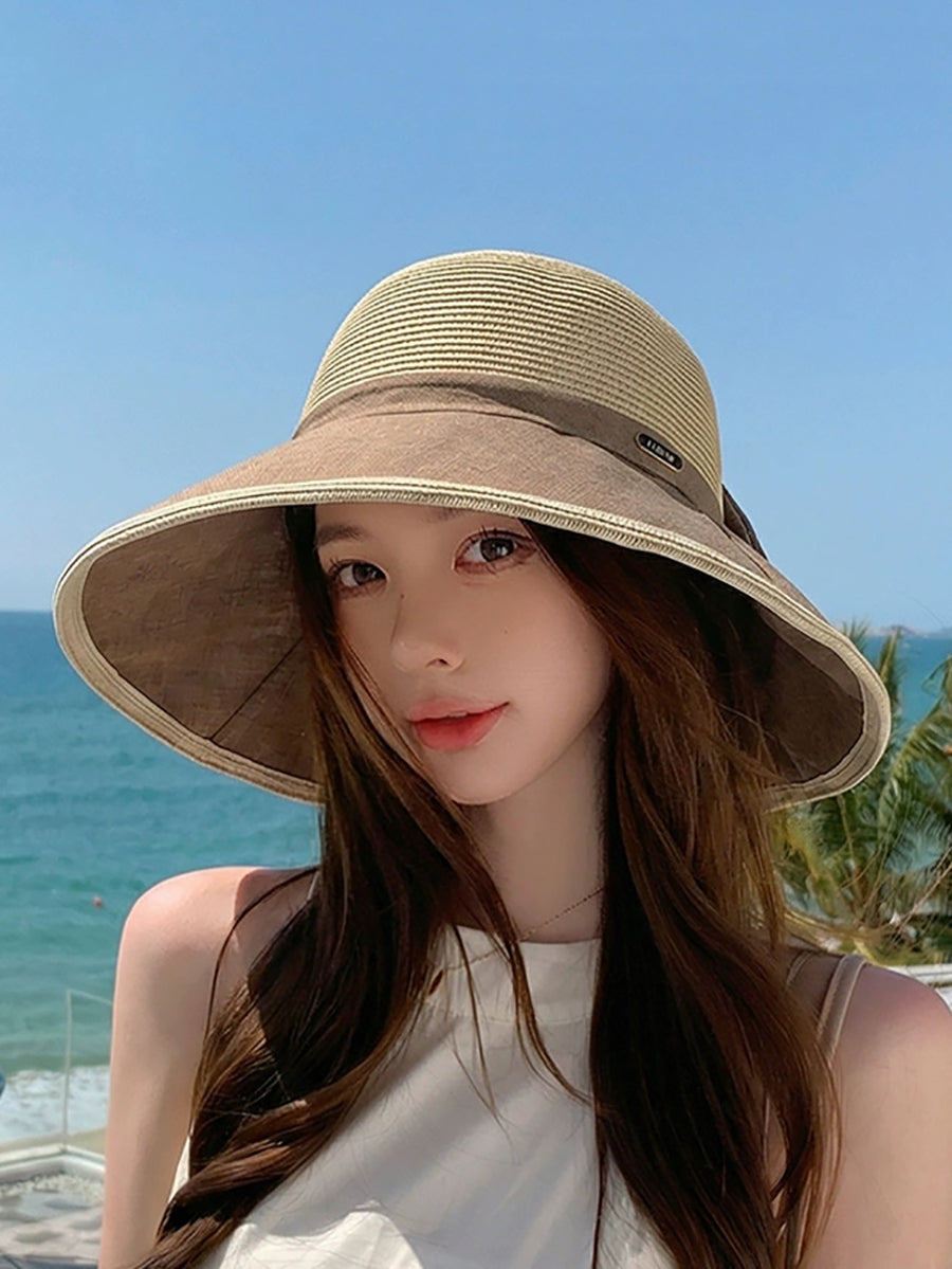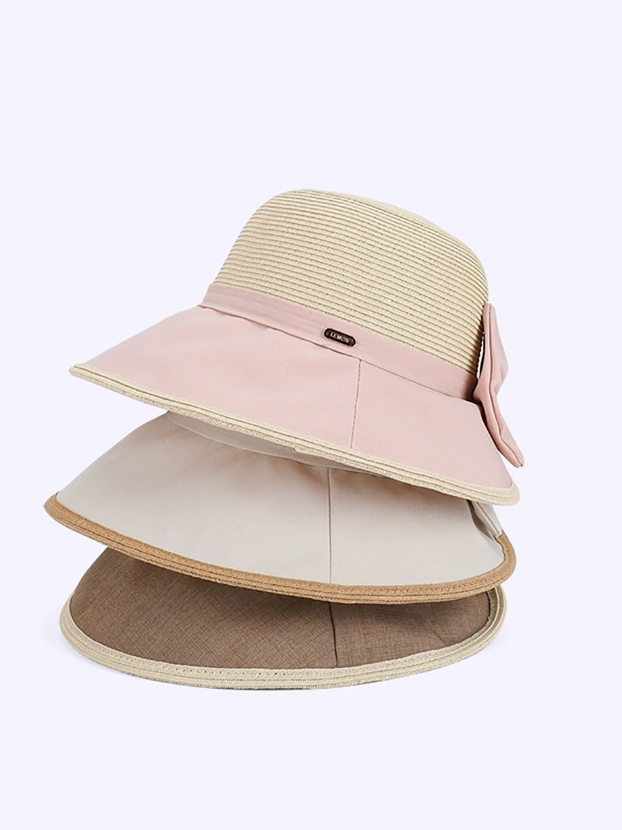 Chapéu feminino de verão com laço colorido e proteção solar