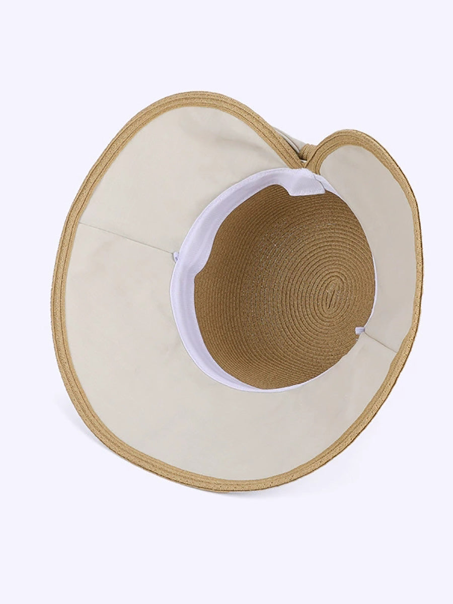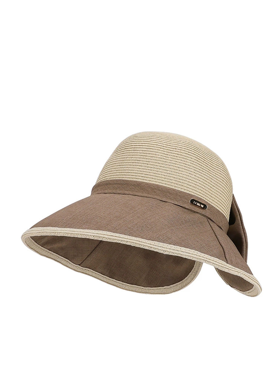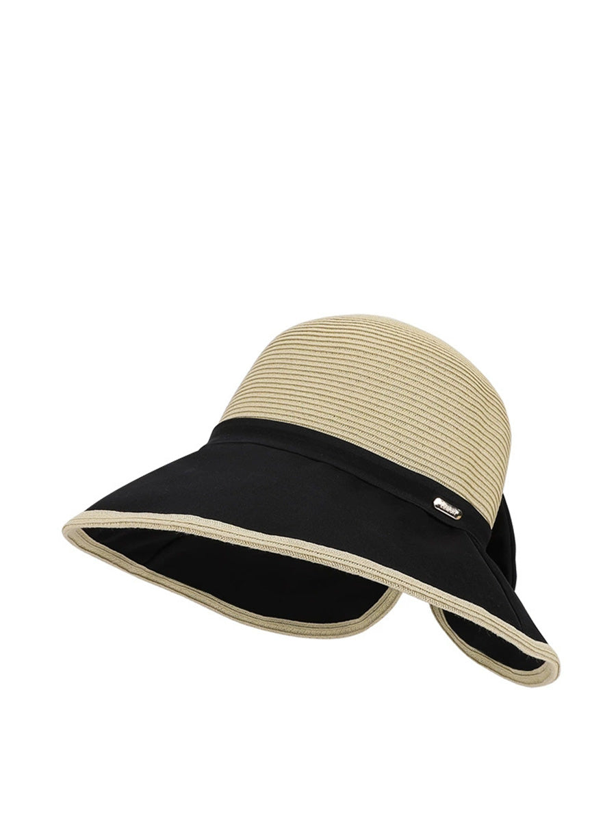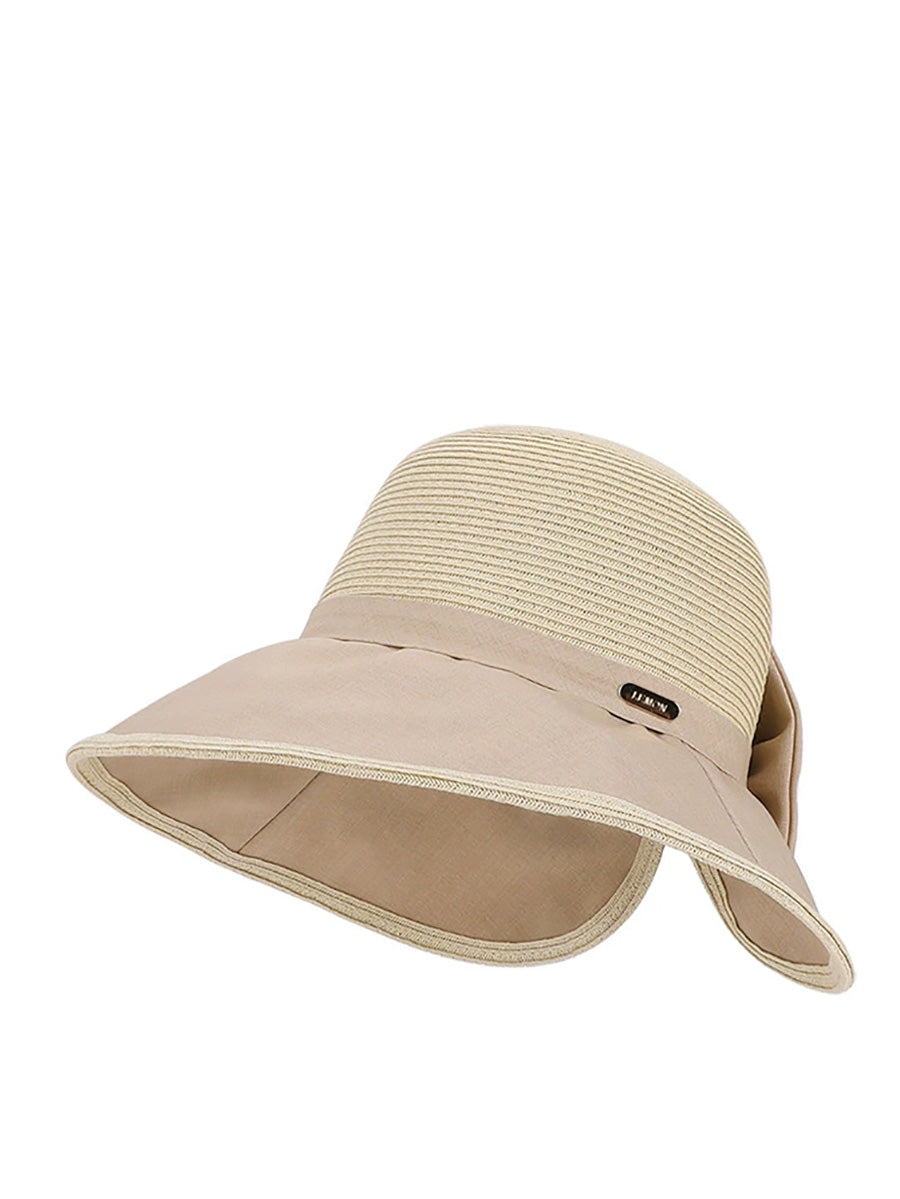 Chapéu feminino de verão com laço colorido e proteção solar