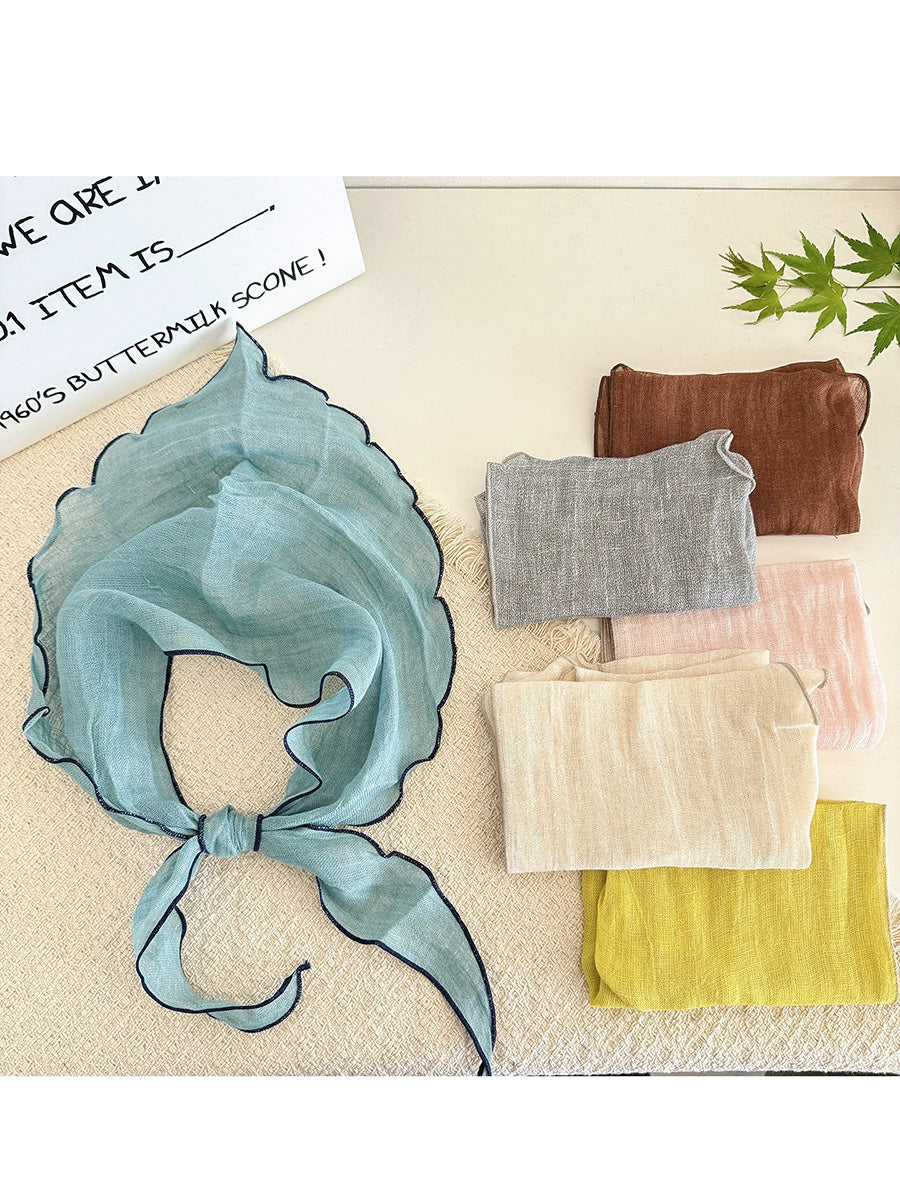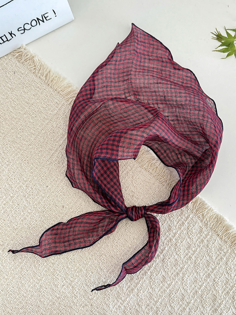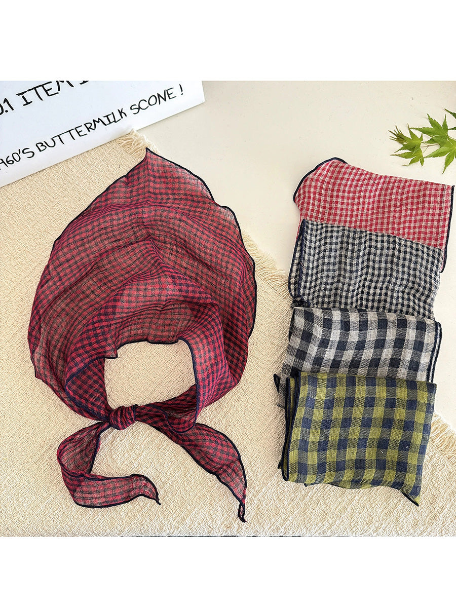 Lenço feminino de verão com estampa xadrez listrada e formato triangular macio