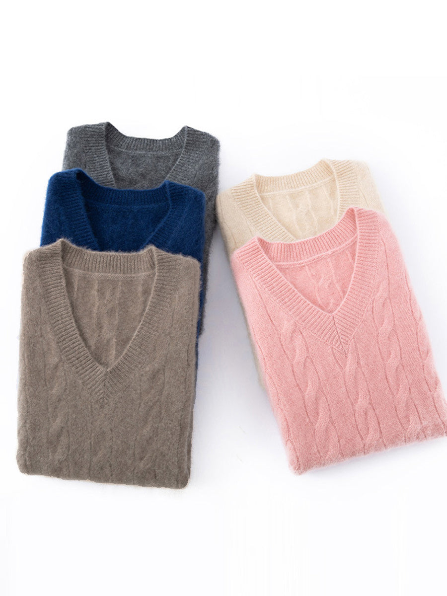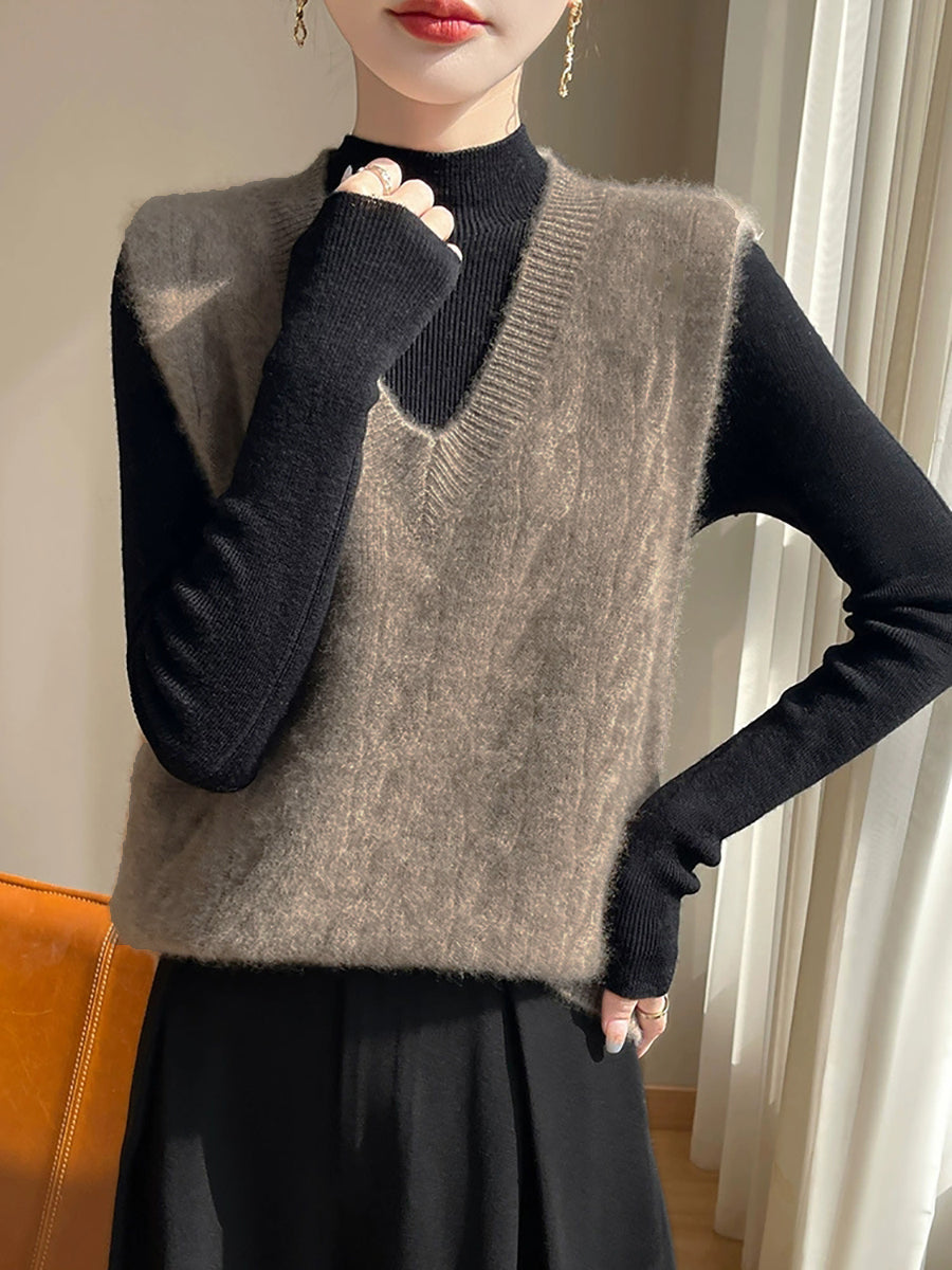 Colete feminino de tricô casual de outono, cor lisa, decote em V