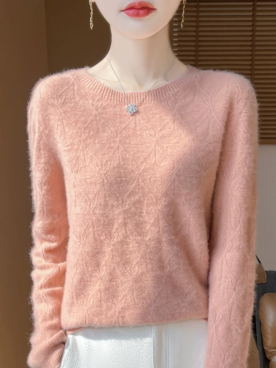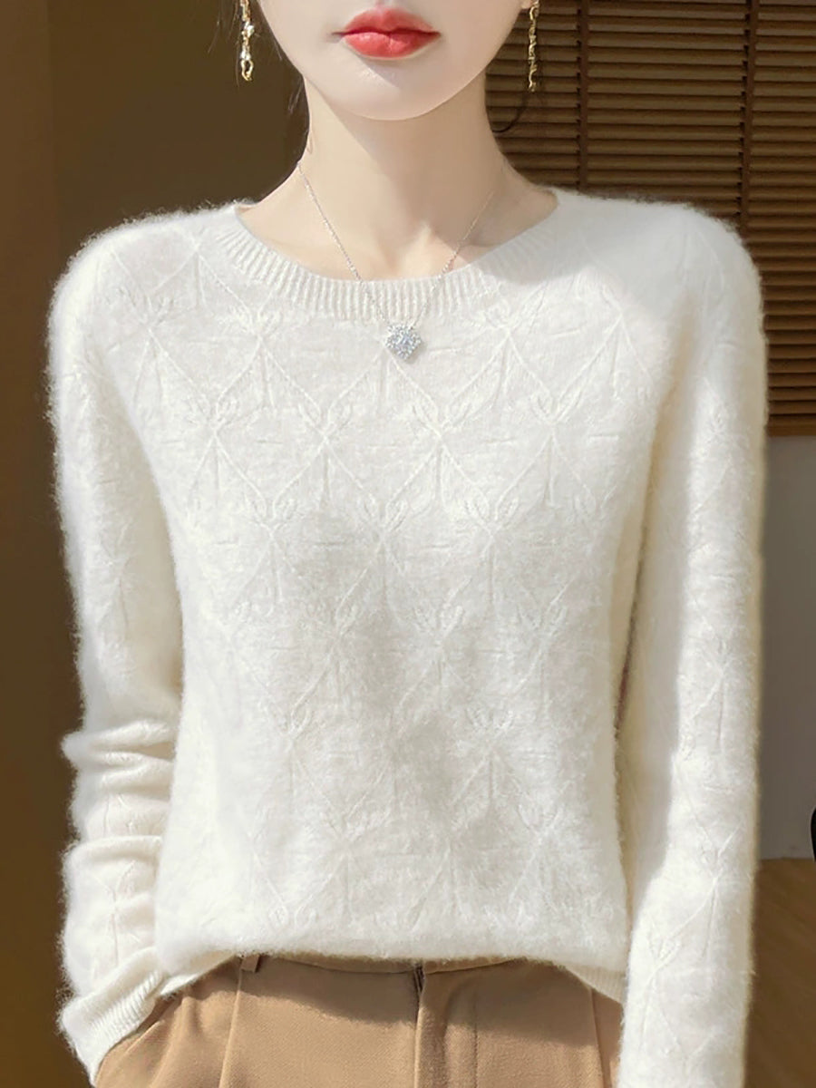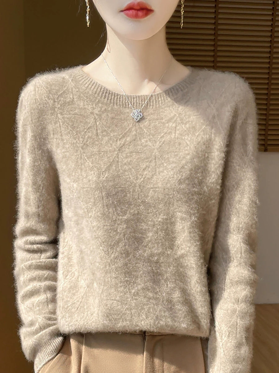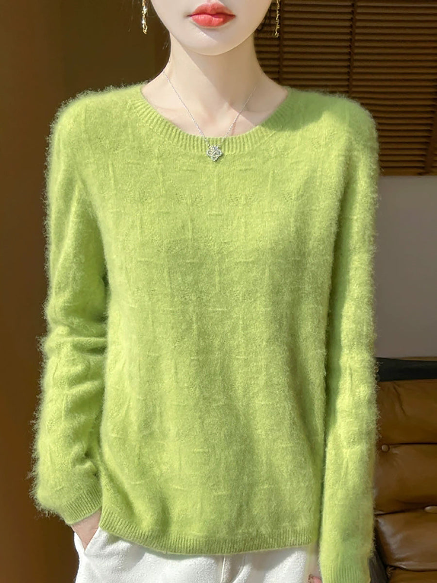 Suéter feminino casual de primavera, cor lisa, gola redonda.