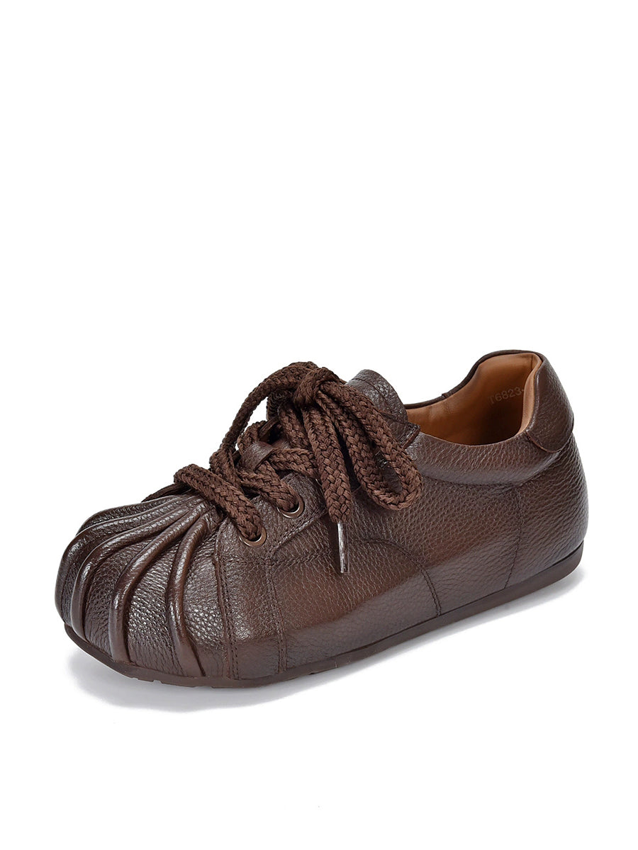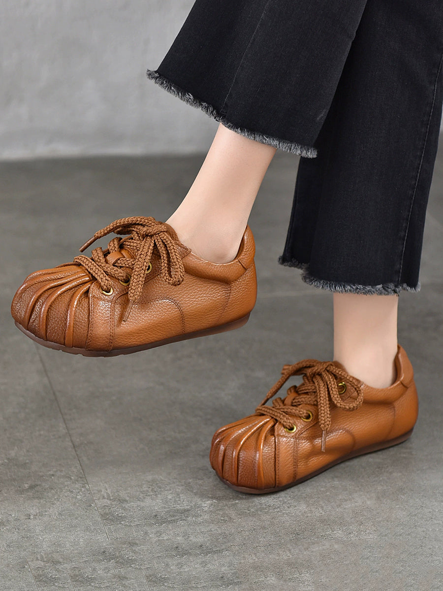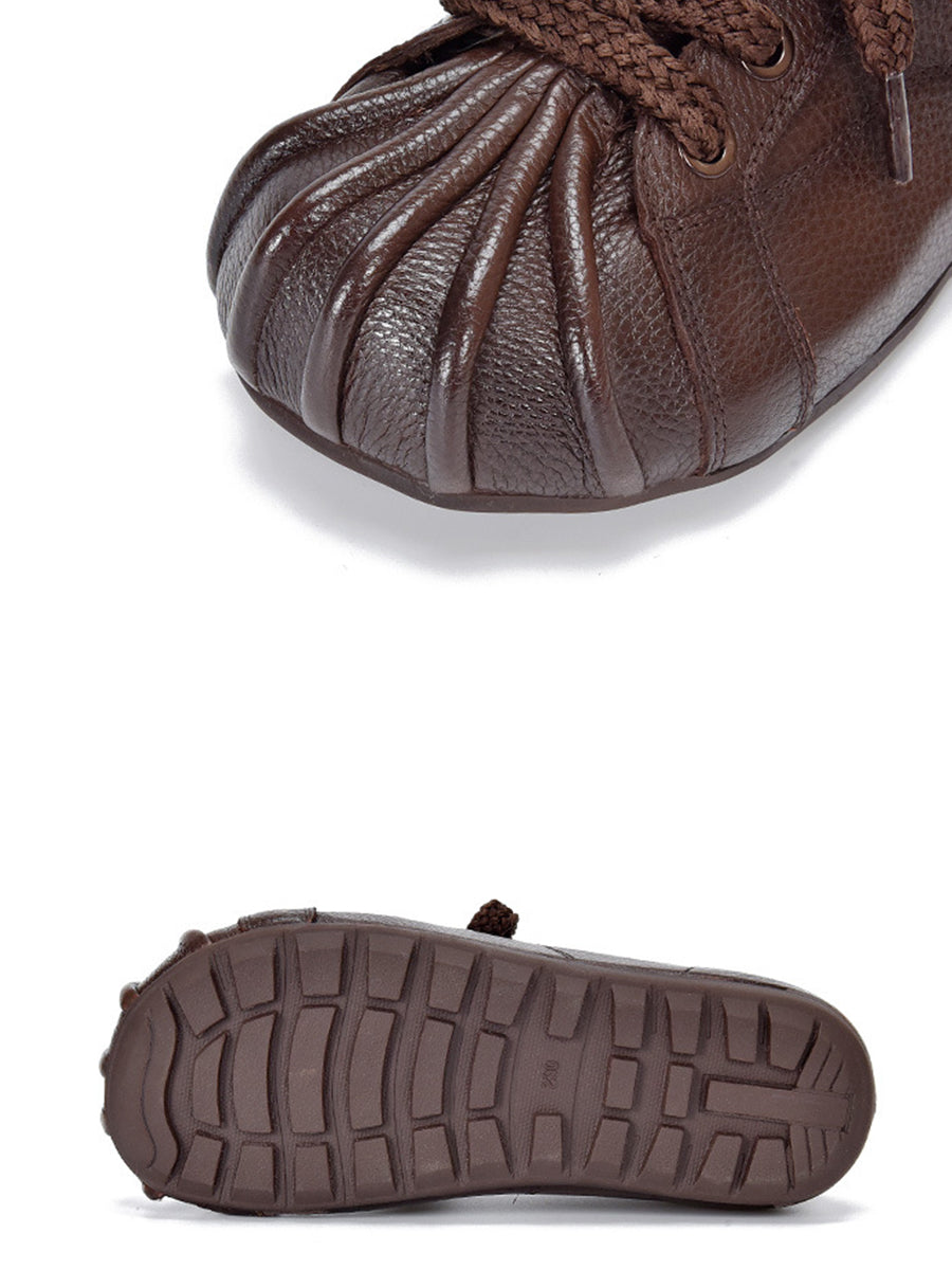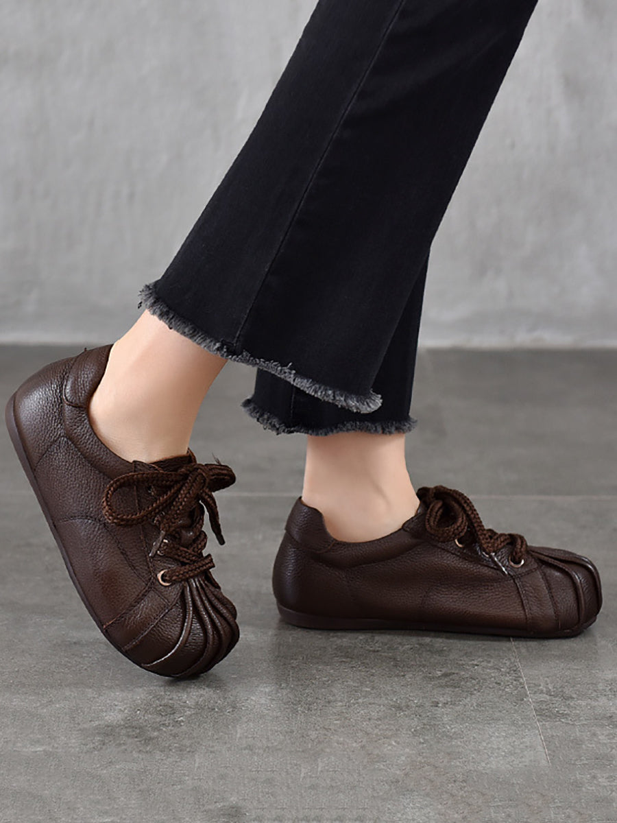 Sapatos femininos retrô de couro legítimo com detalhes em patchwork.