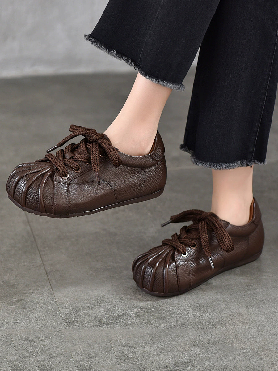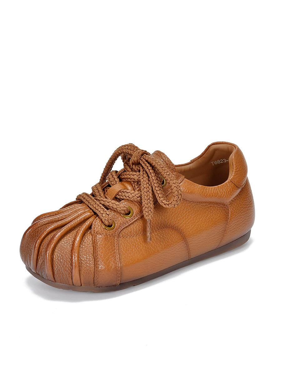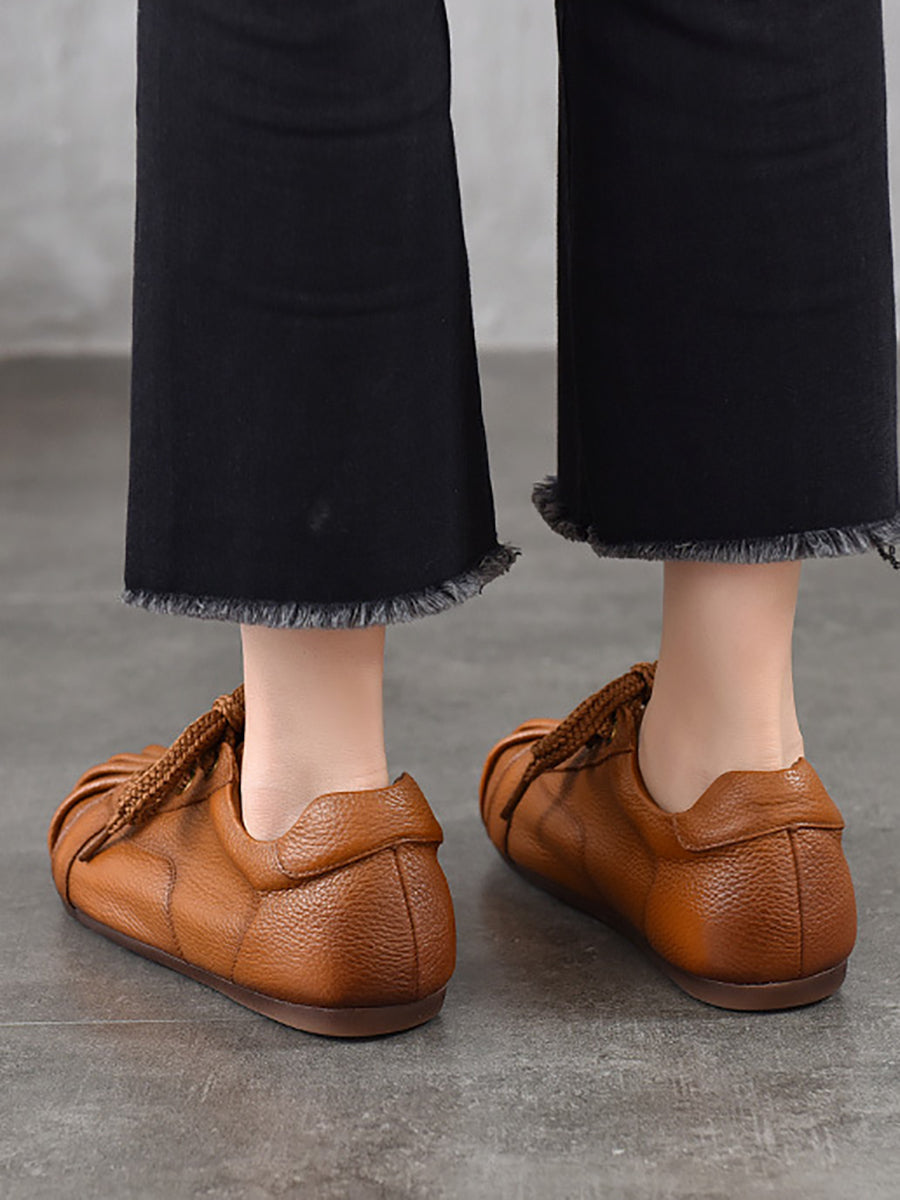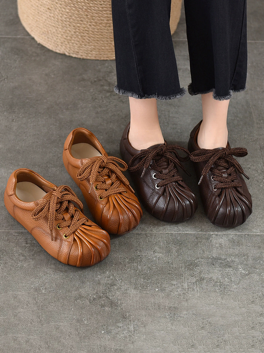 Sapatos femininos retrô de couro legítimo com detalhes em patchwork.