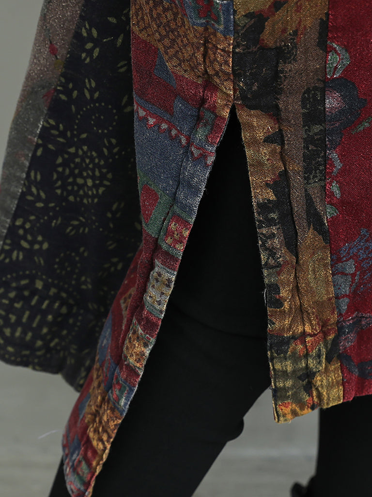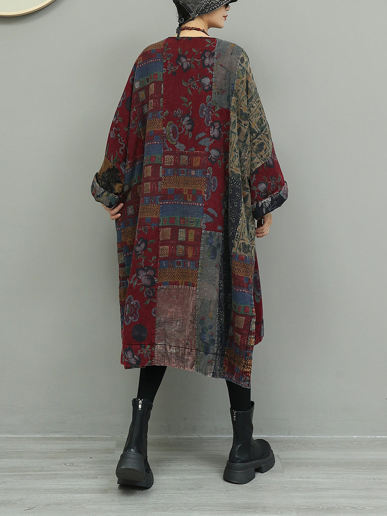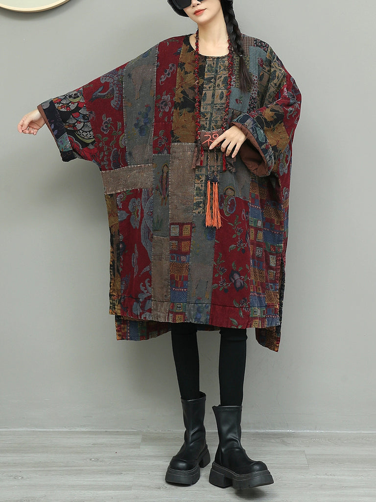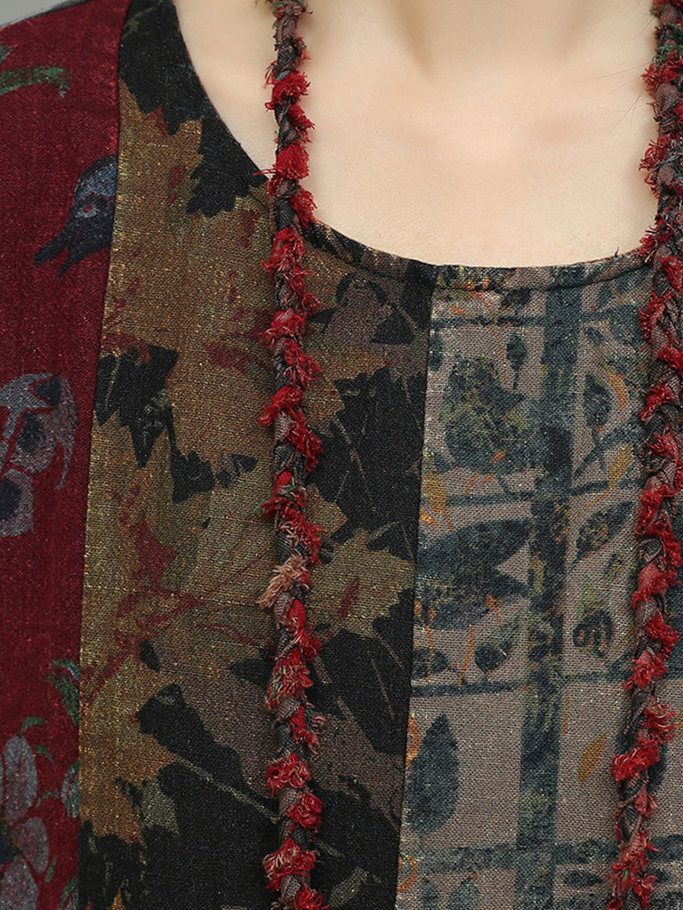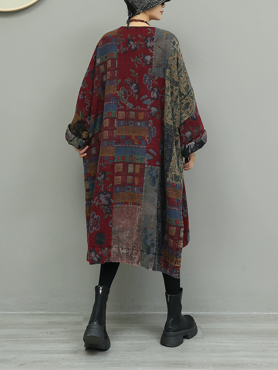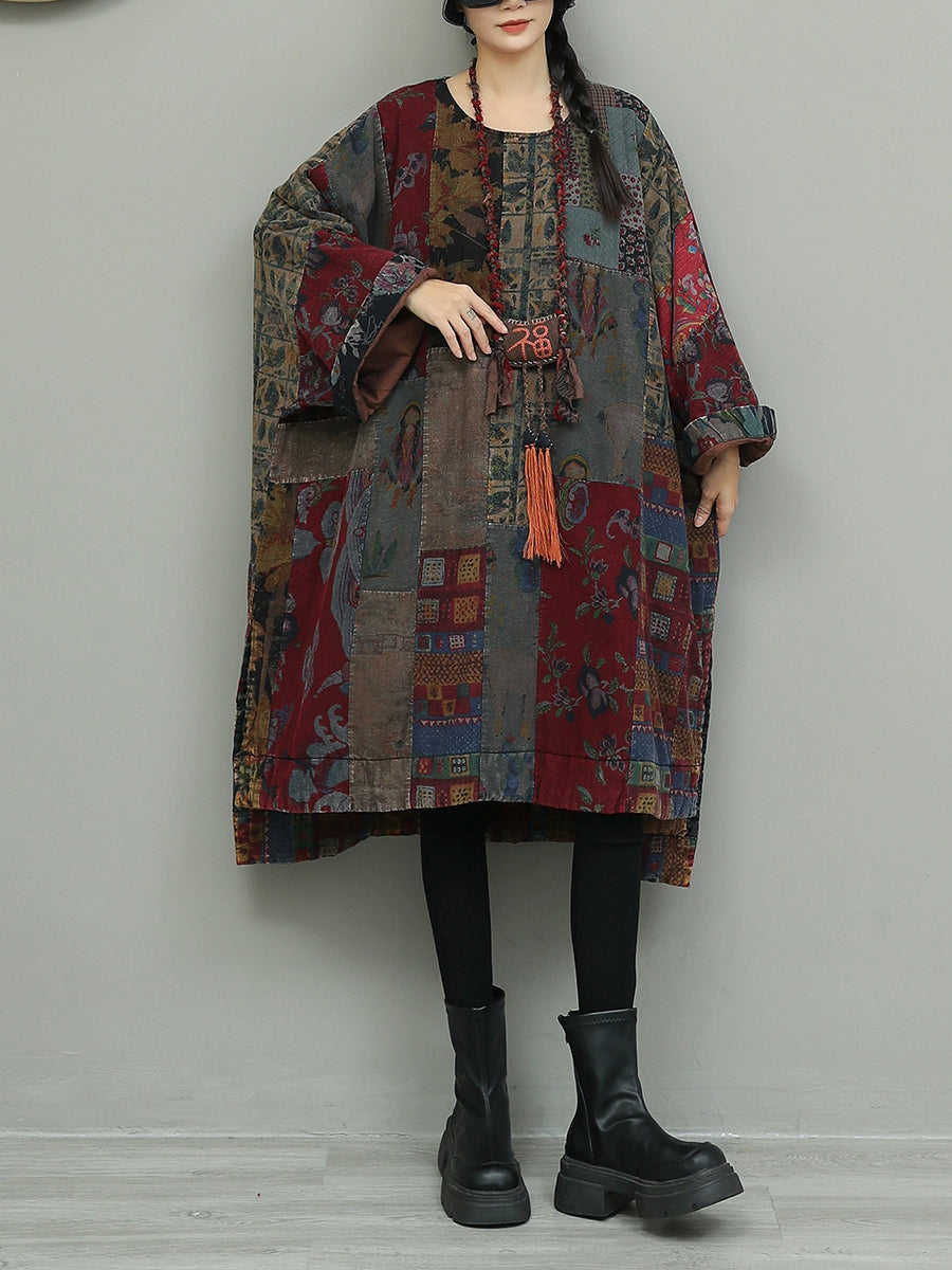 Women Autumn Flower Patchwork Cotton Dress