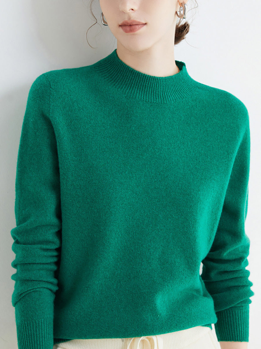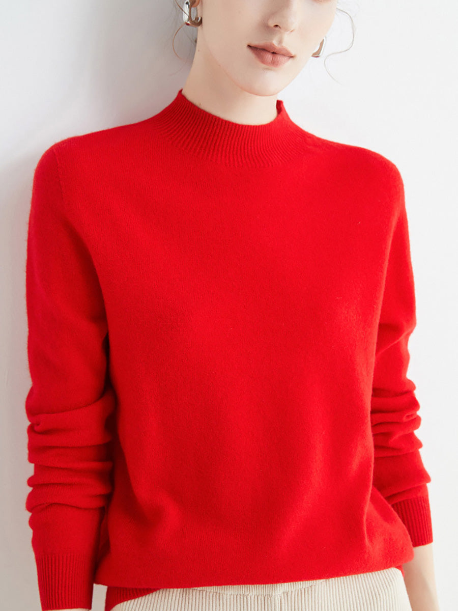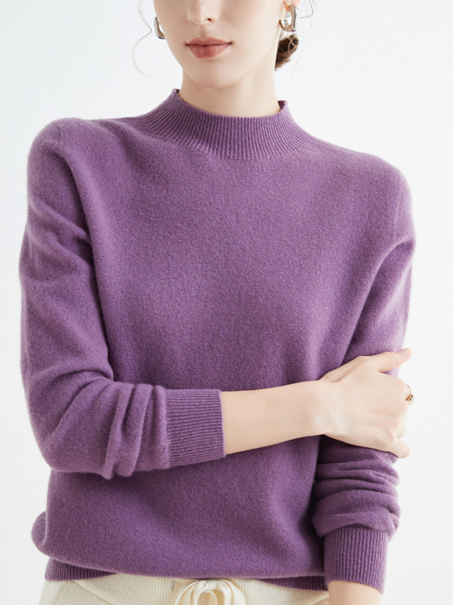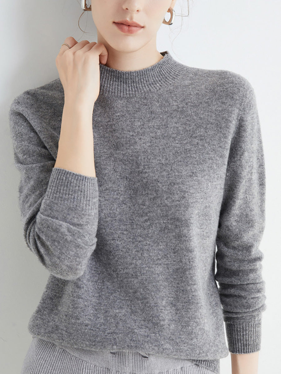Women Autumn Artsy Pure Color Wool Half-Turtleneck Sweater