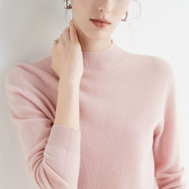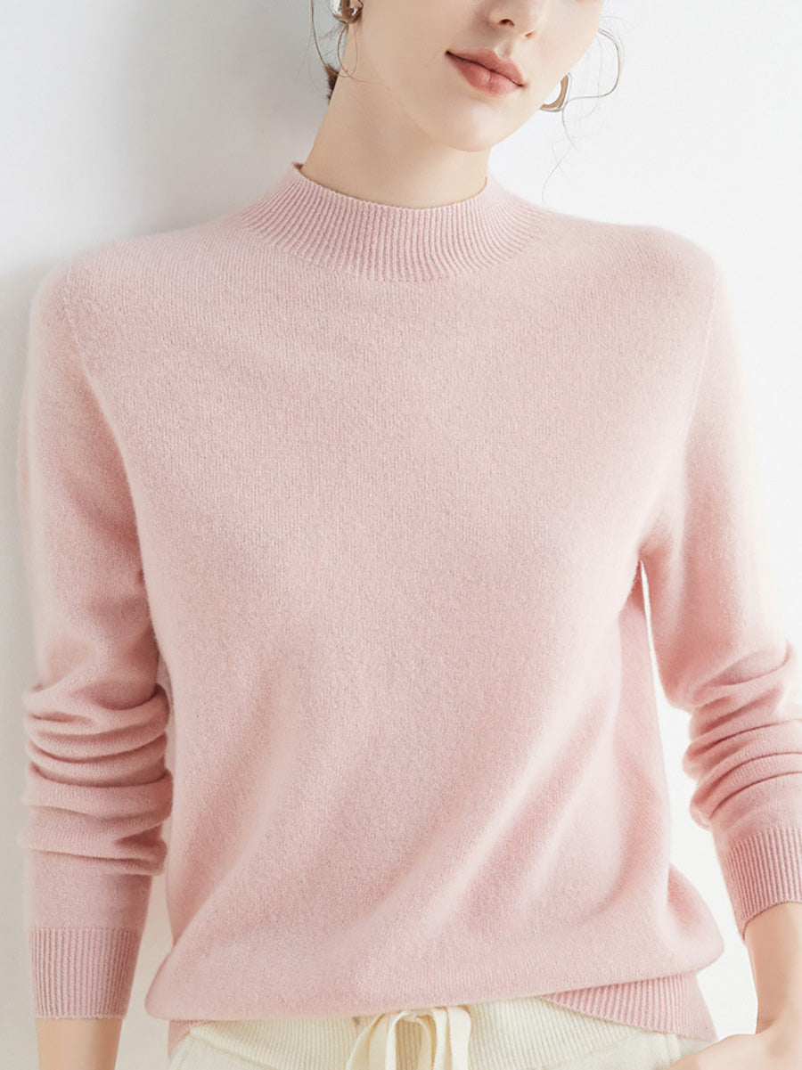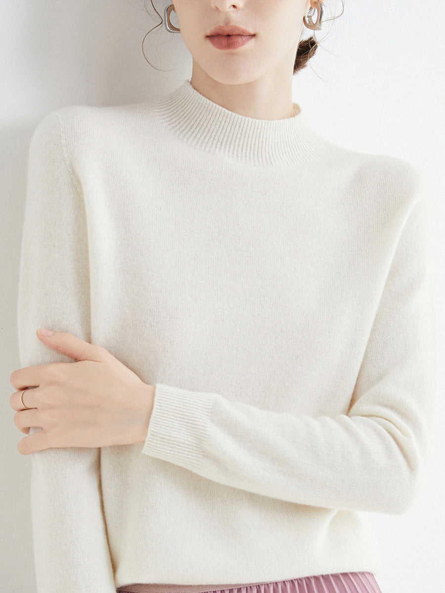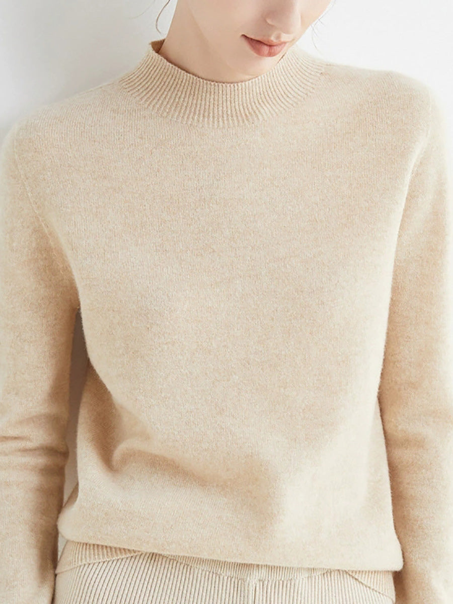 Women Autumn Artsy Pure Color Wool Half-Turtleneck Sweater
