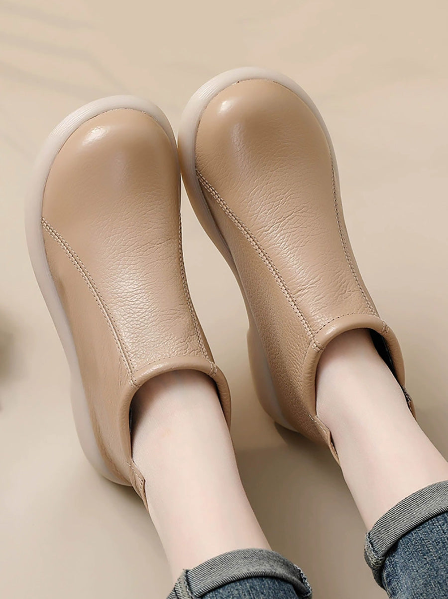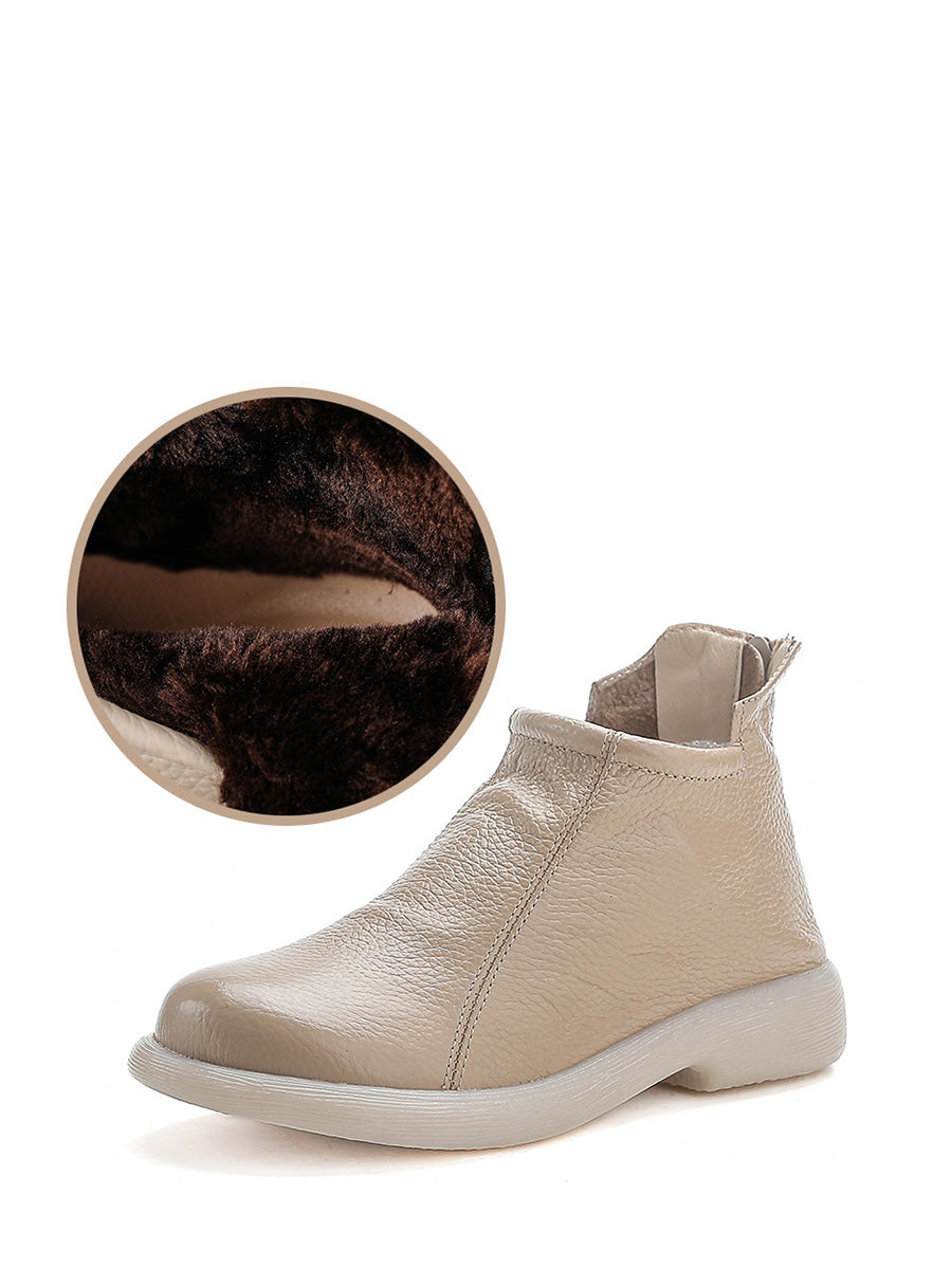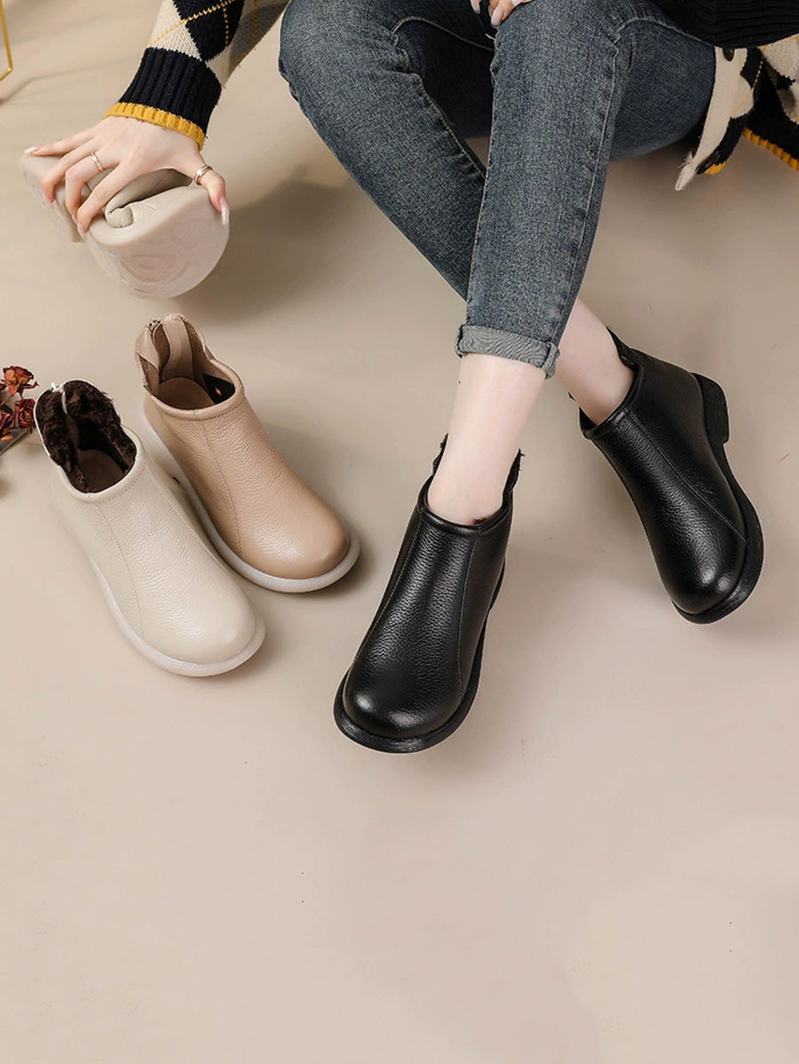Women Winter Stylish Genuine Leather Low Heel Boots
