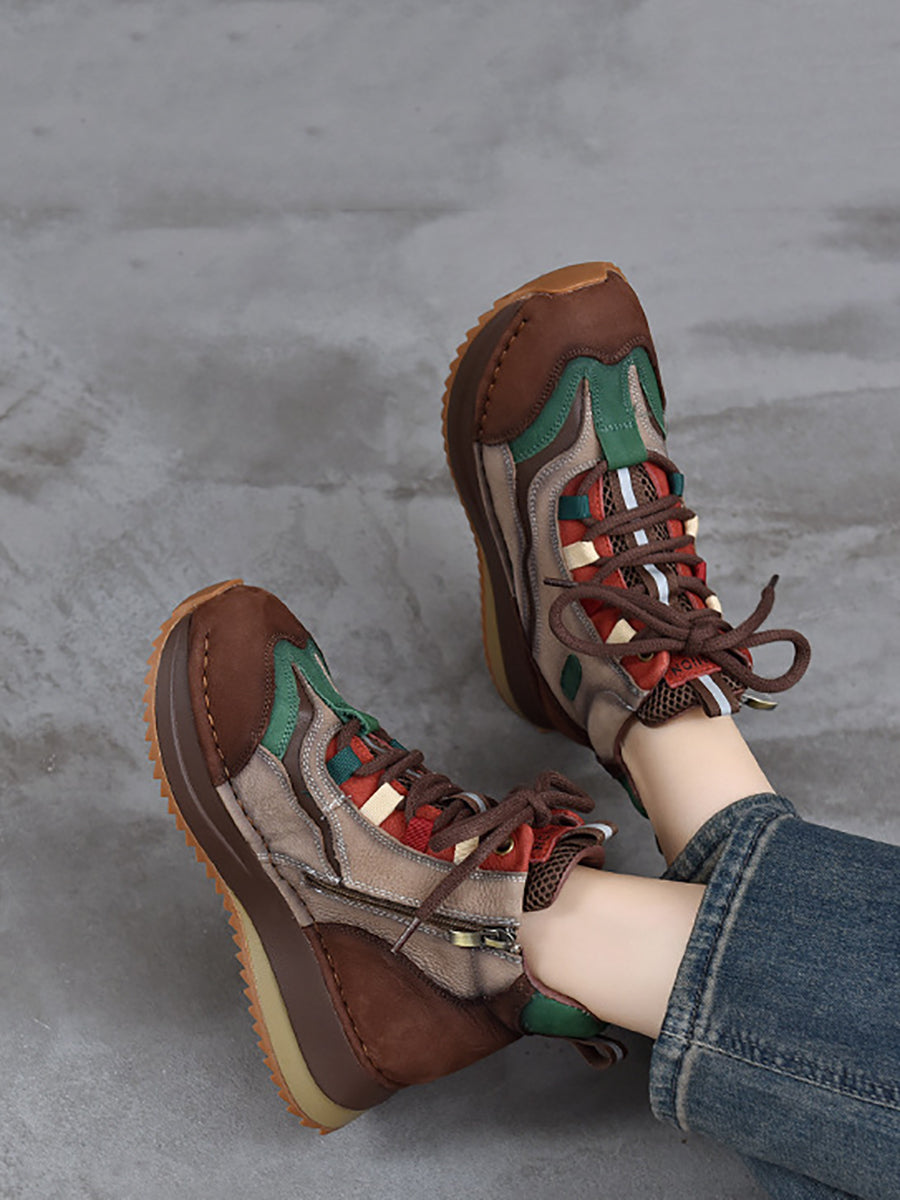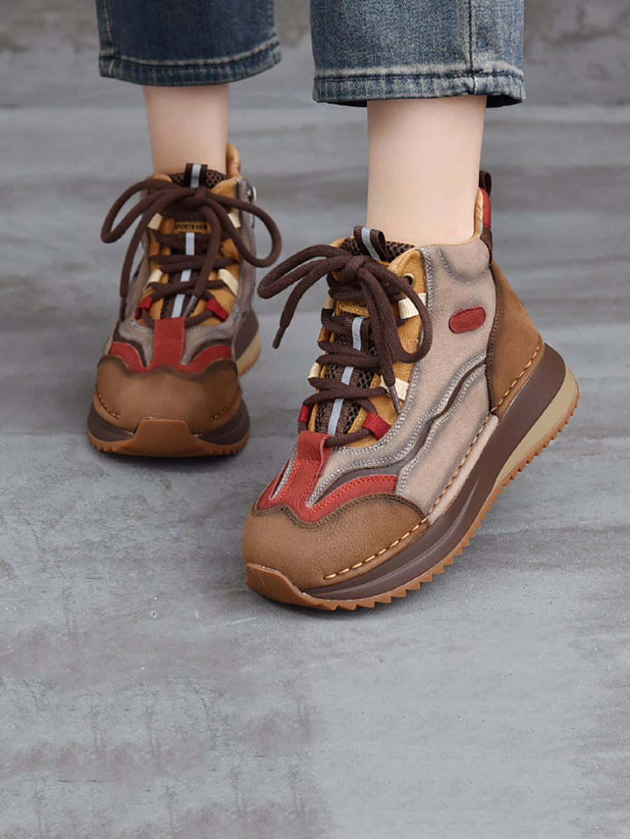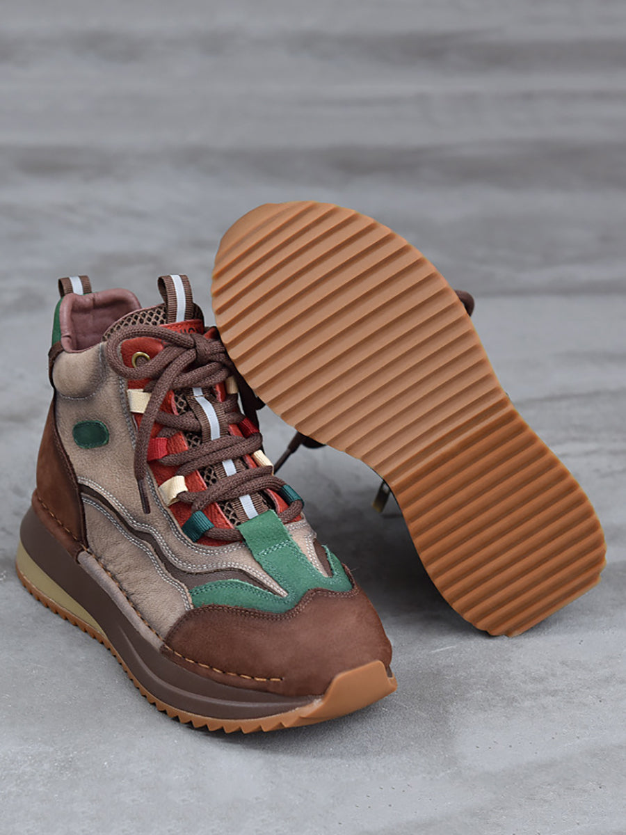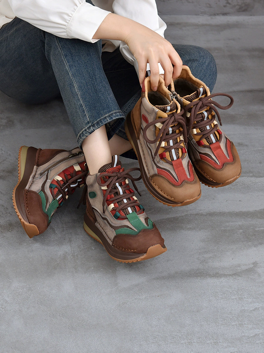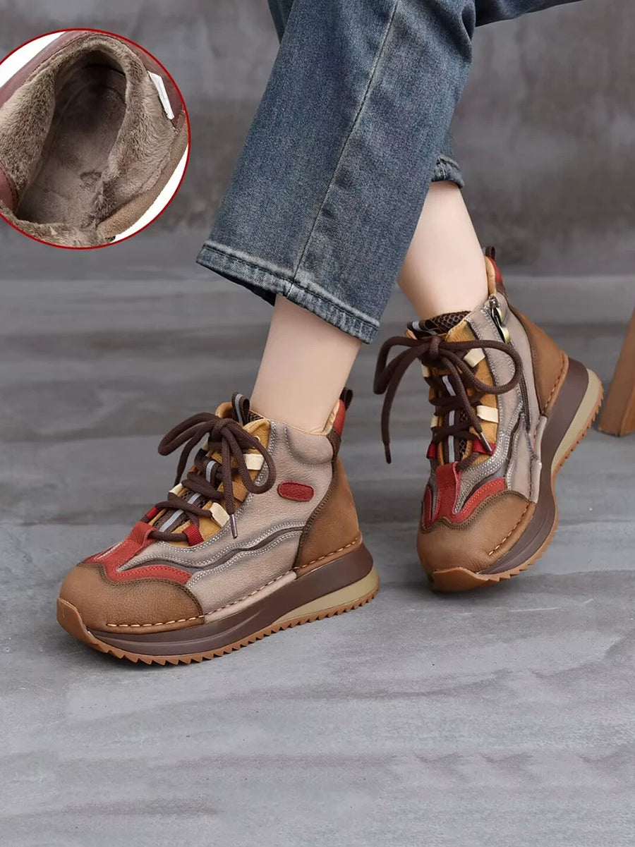 Women Winter Genuine Leather Colorblock Ankle Boots