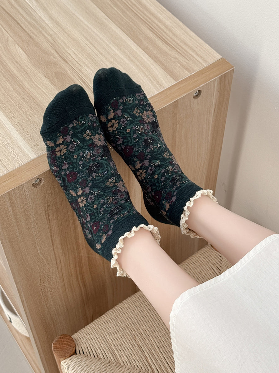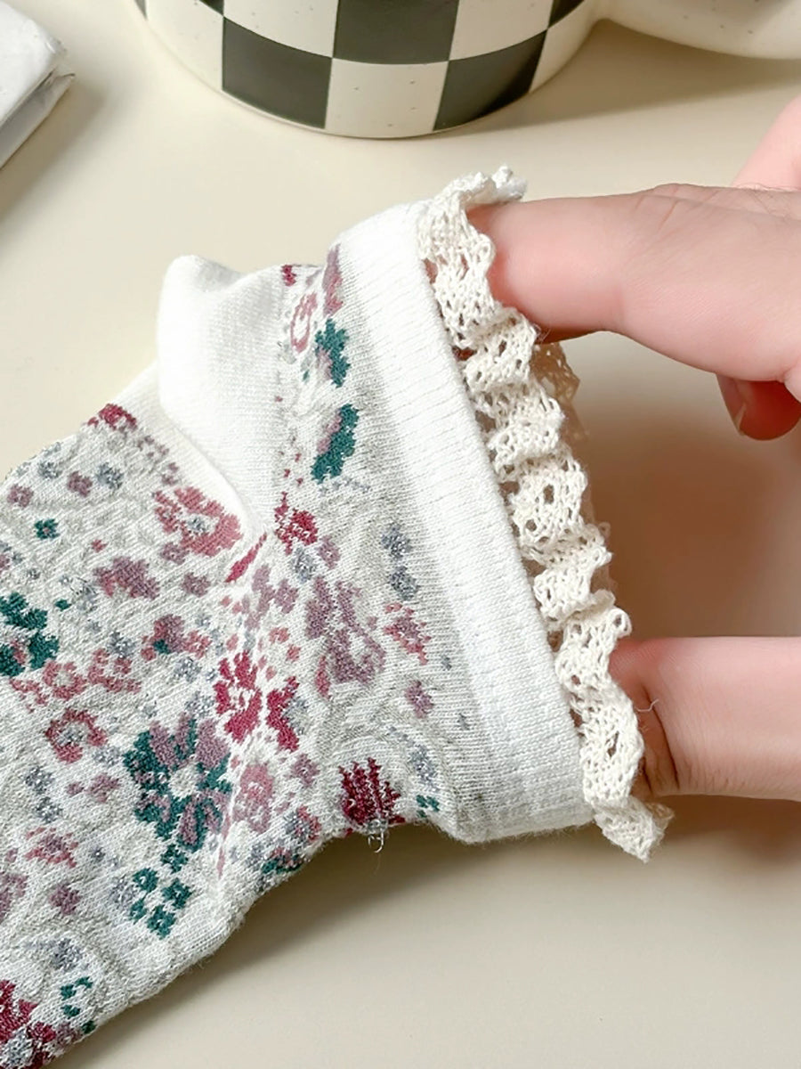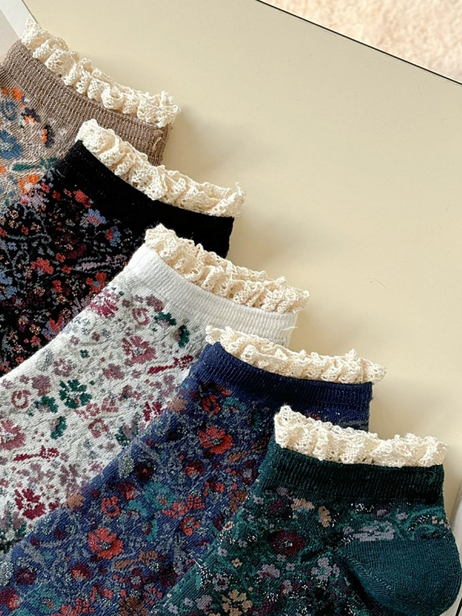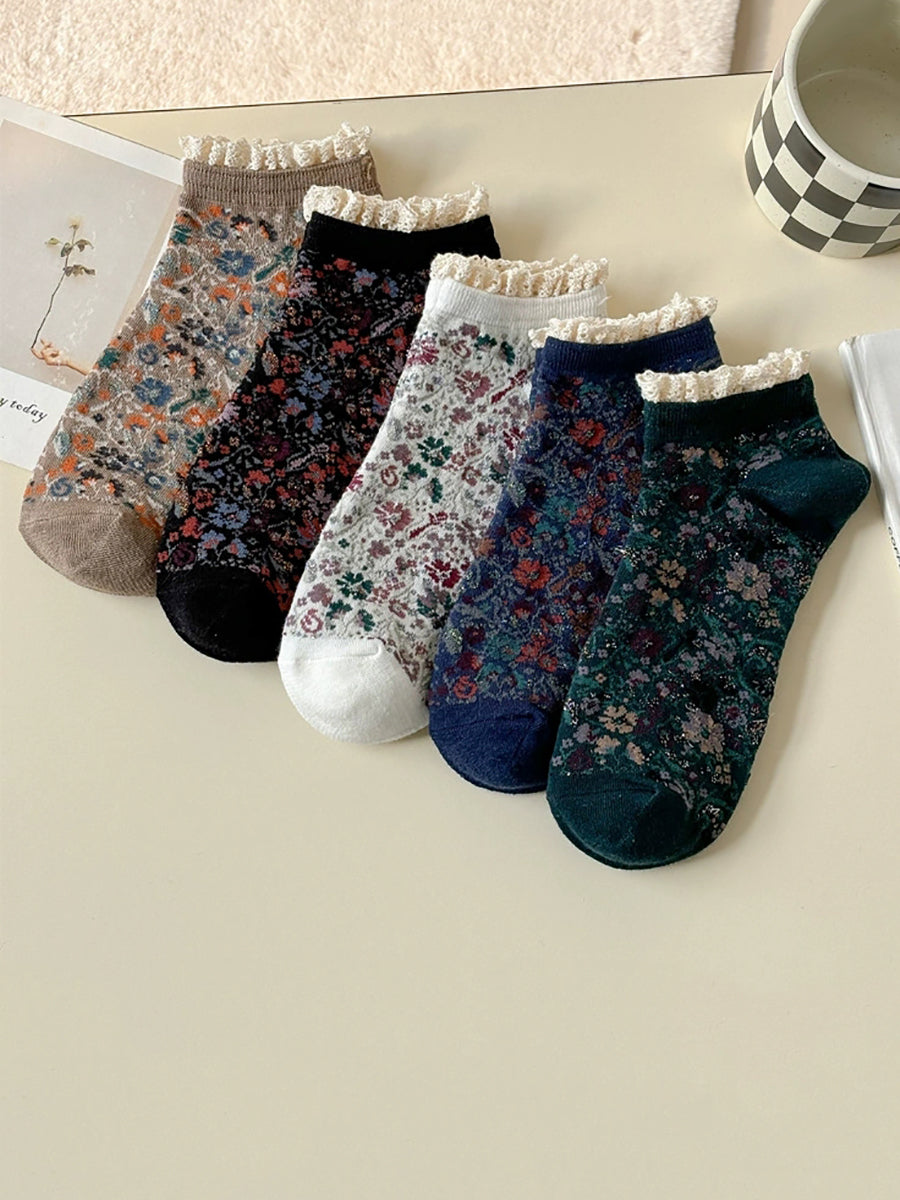 5 Pairs Women Artsy Floral Lace Spliced Socks