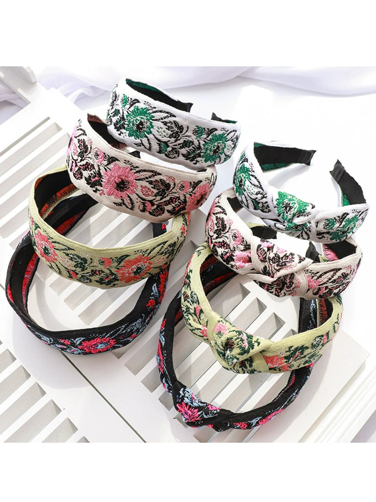 4 Pieces Women Ethnic Embroidery Knot Hair Brand
