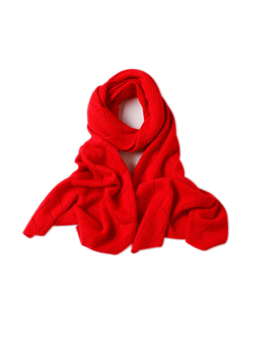 Women Winter Pure Color Hollow Out Knitted Shawl Scarf