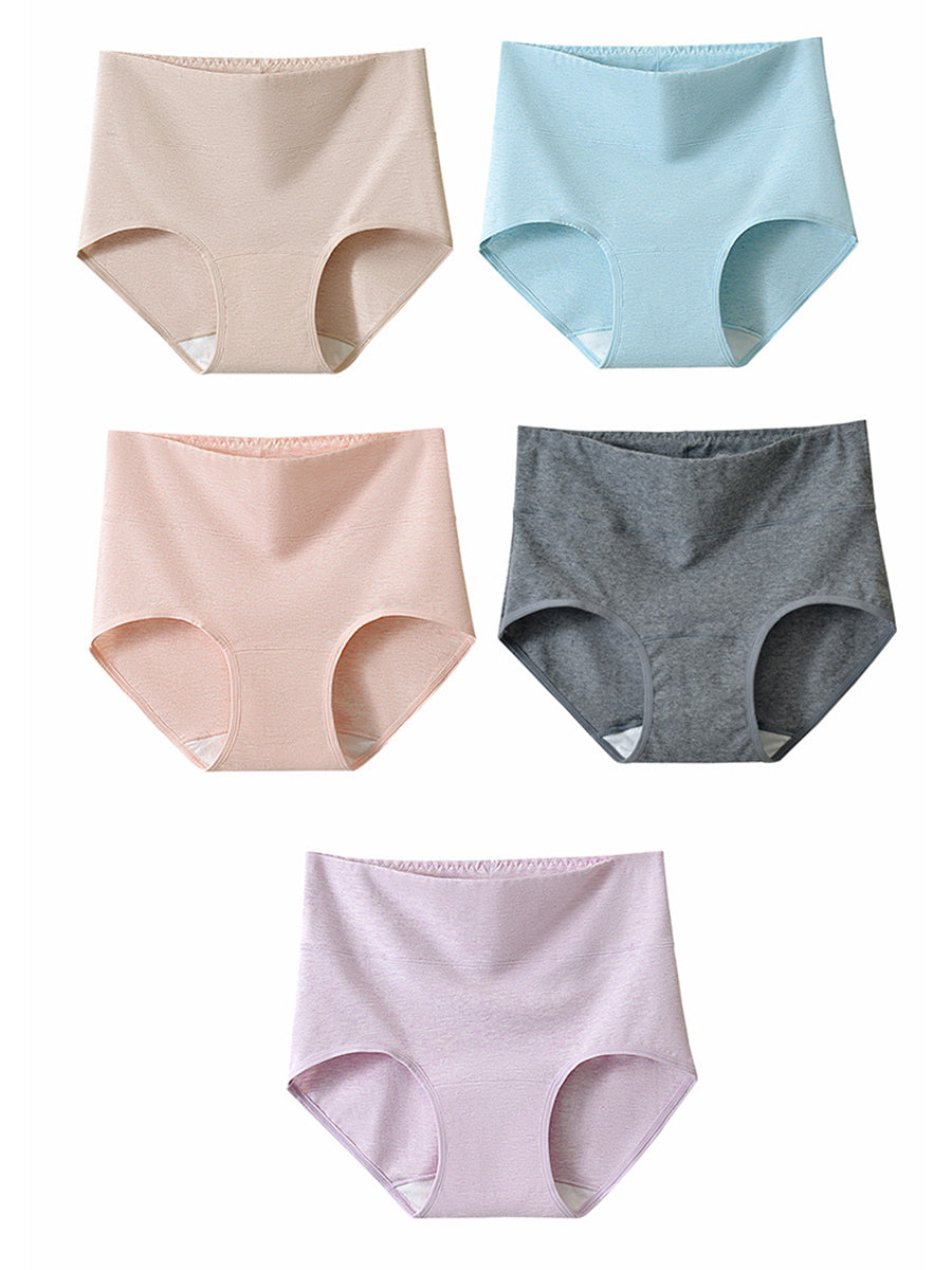 5 Pieces Women Pure Color High Waist Cotton Underwear