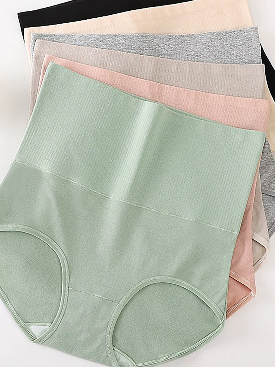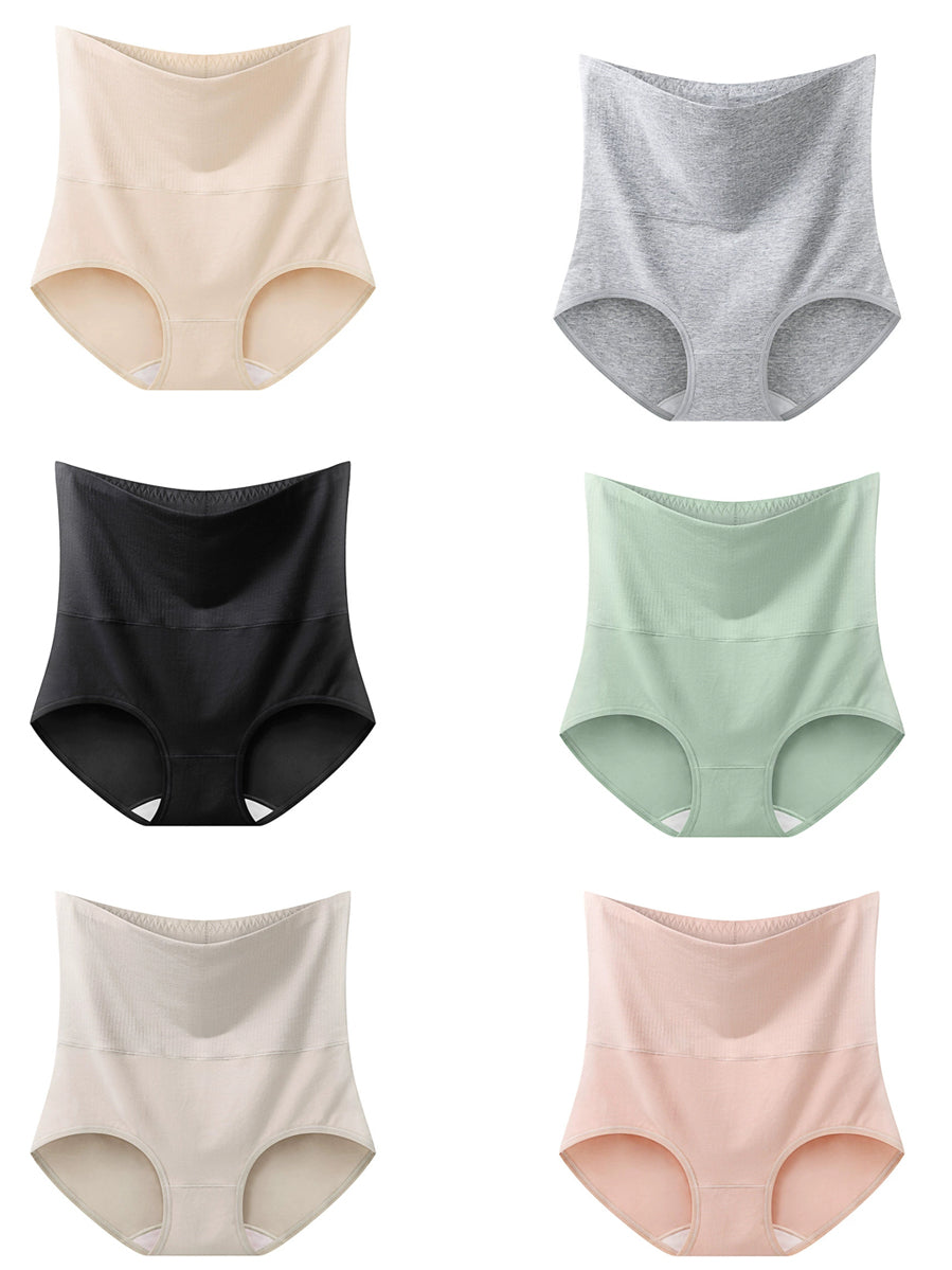 6 Pieces Women Casual Pure Color High Waist Underwear