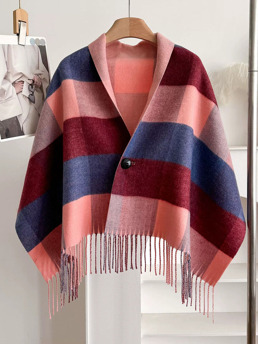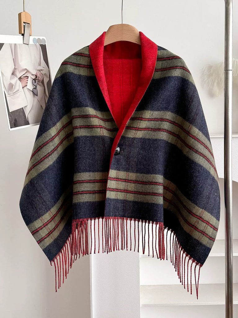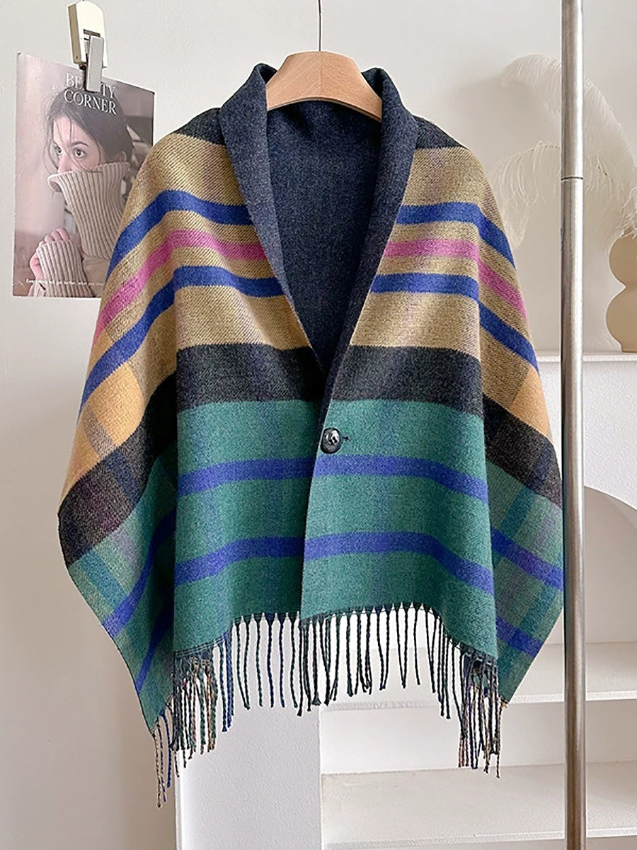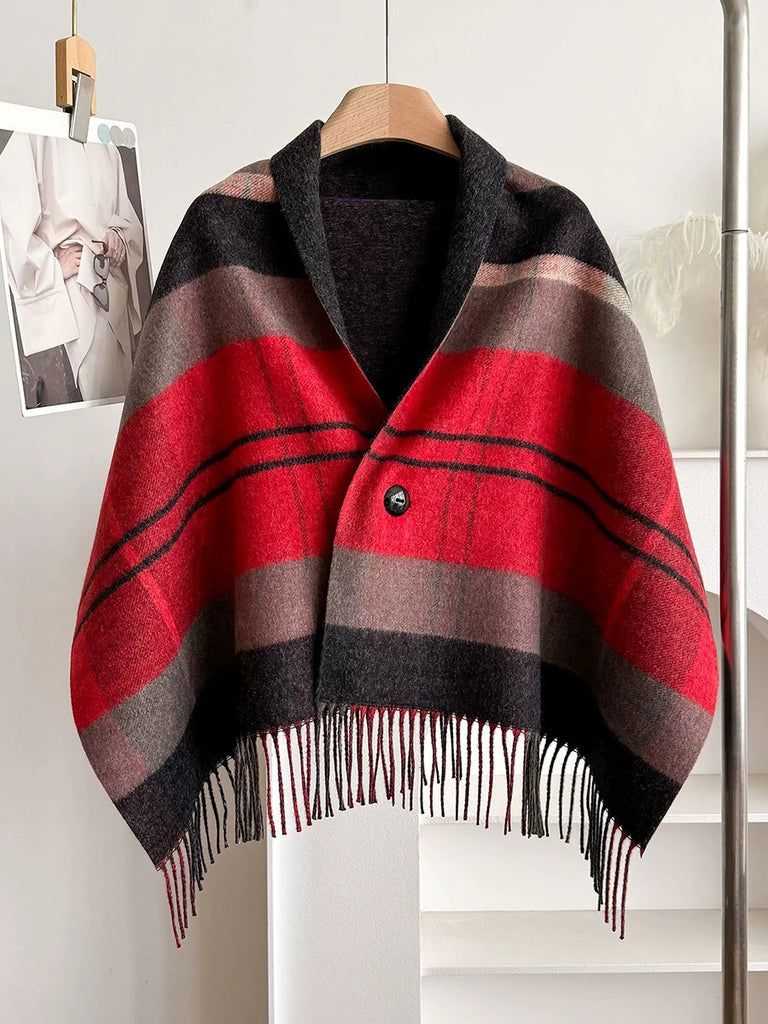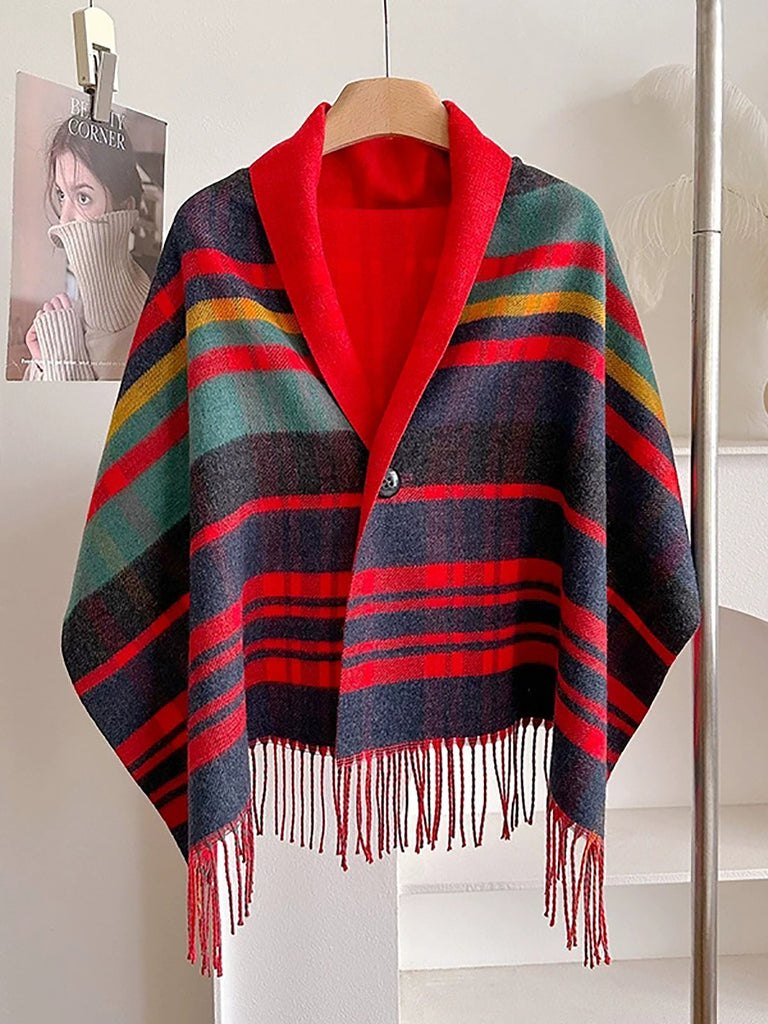 Winter Plaid Stripe Tassel Shawl Scarf