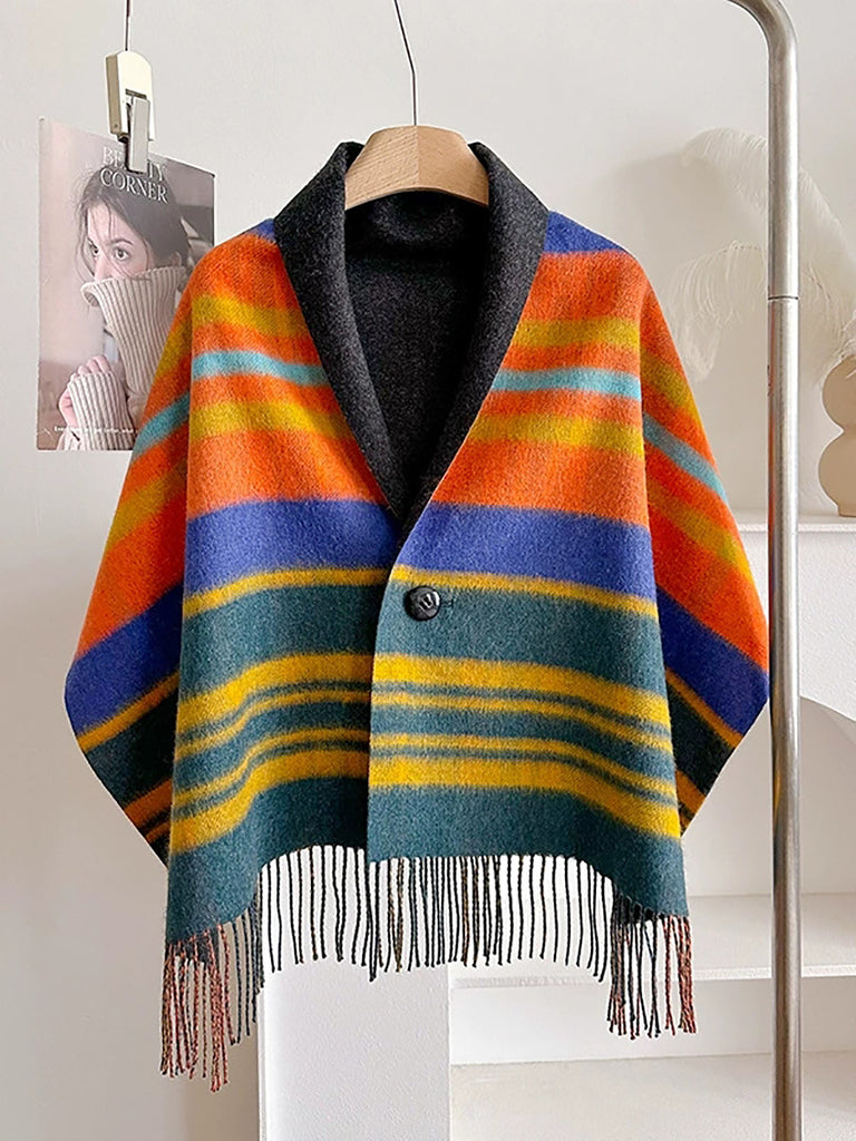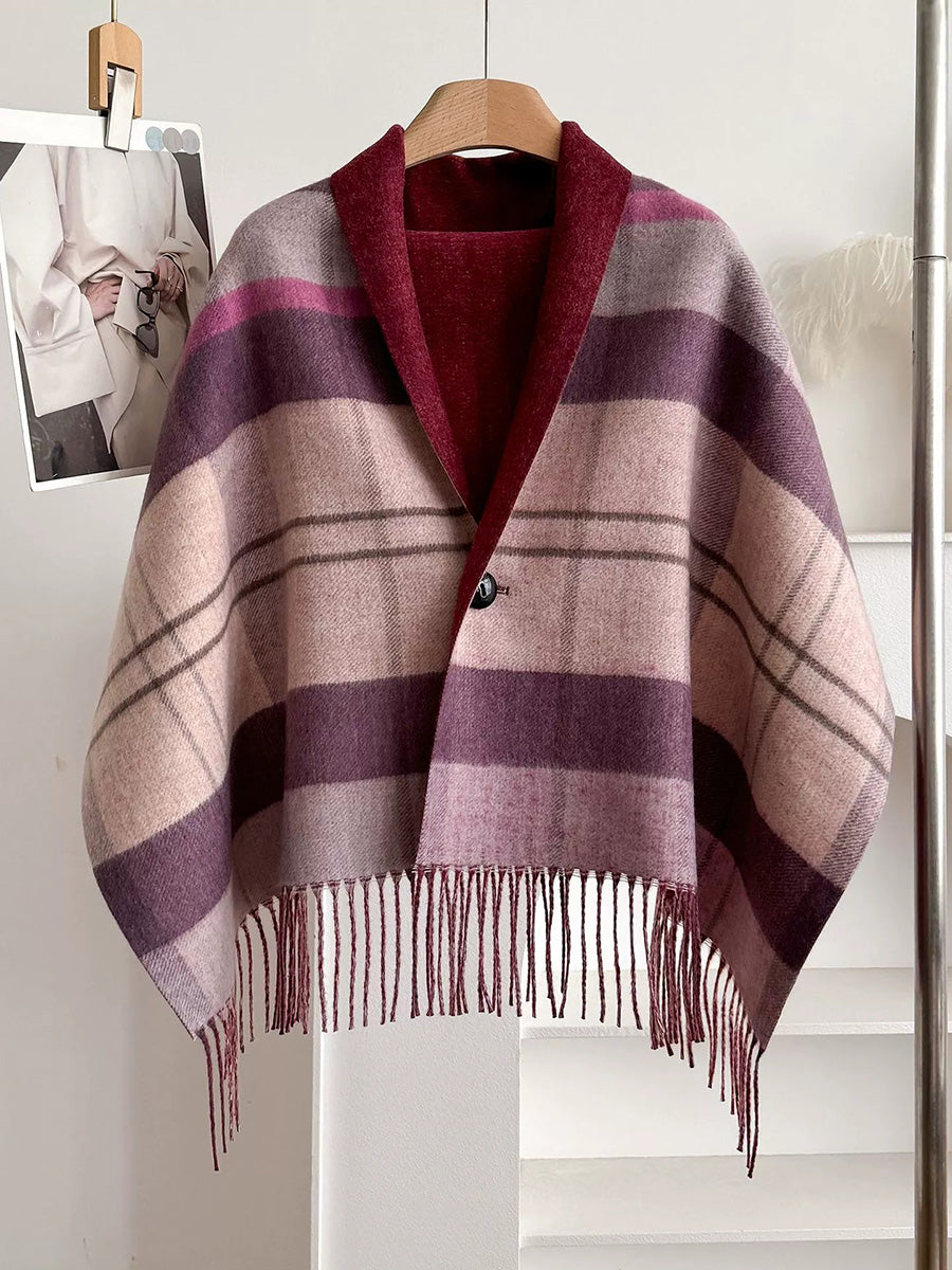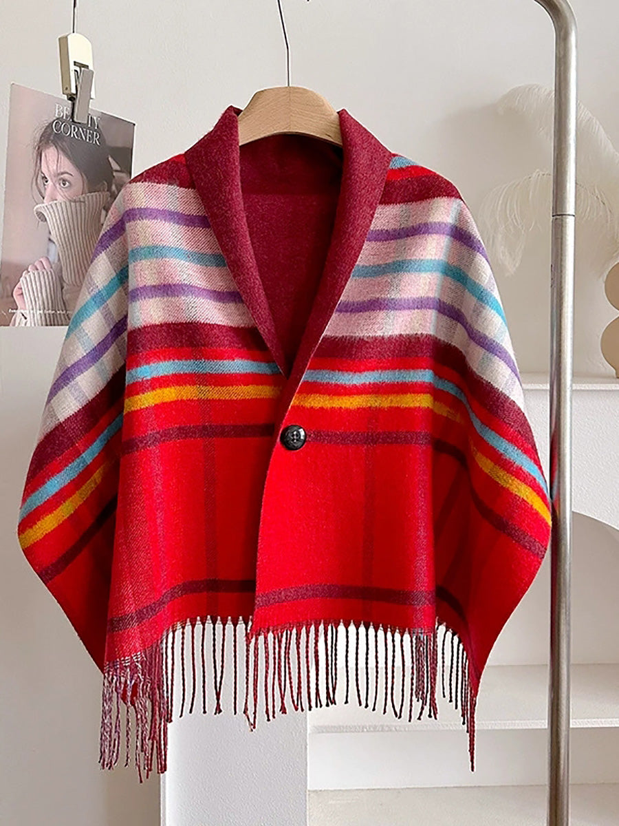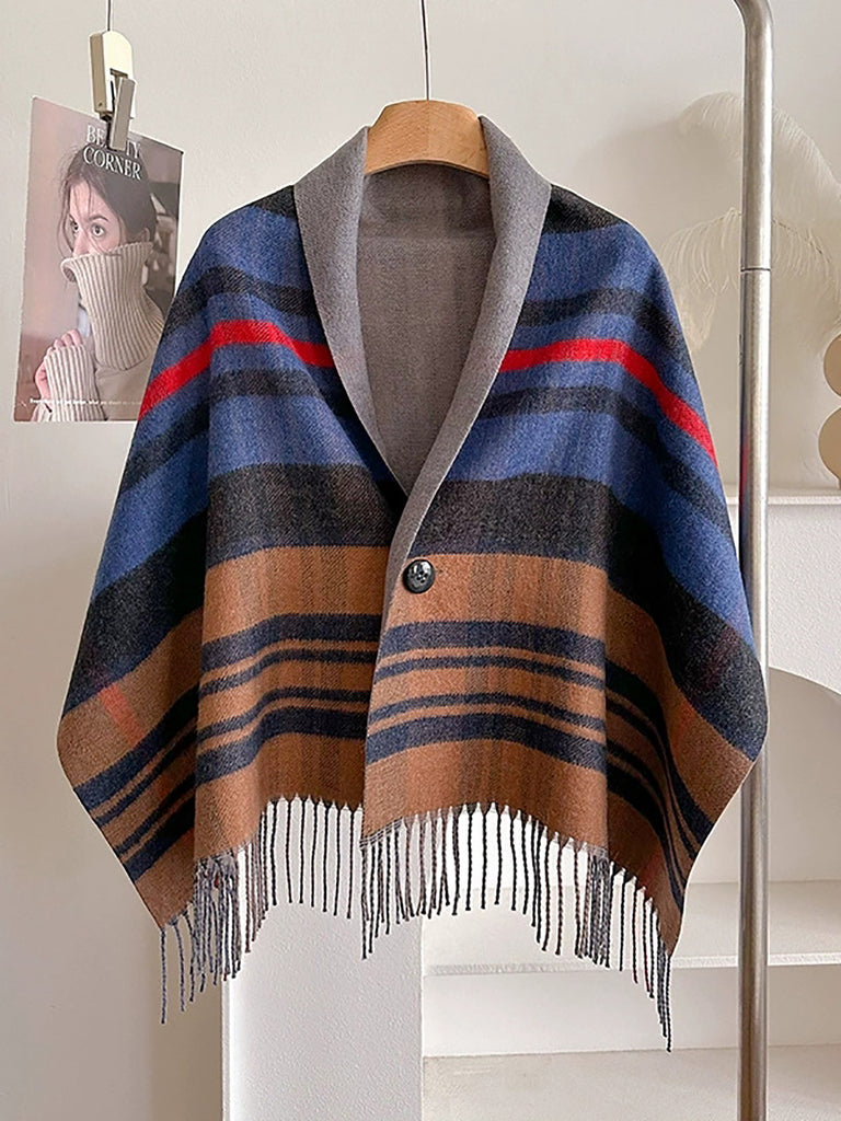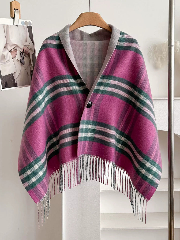 Winter Plaid Stripe Tassel Shawl Scarf