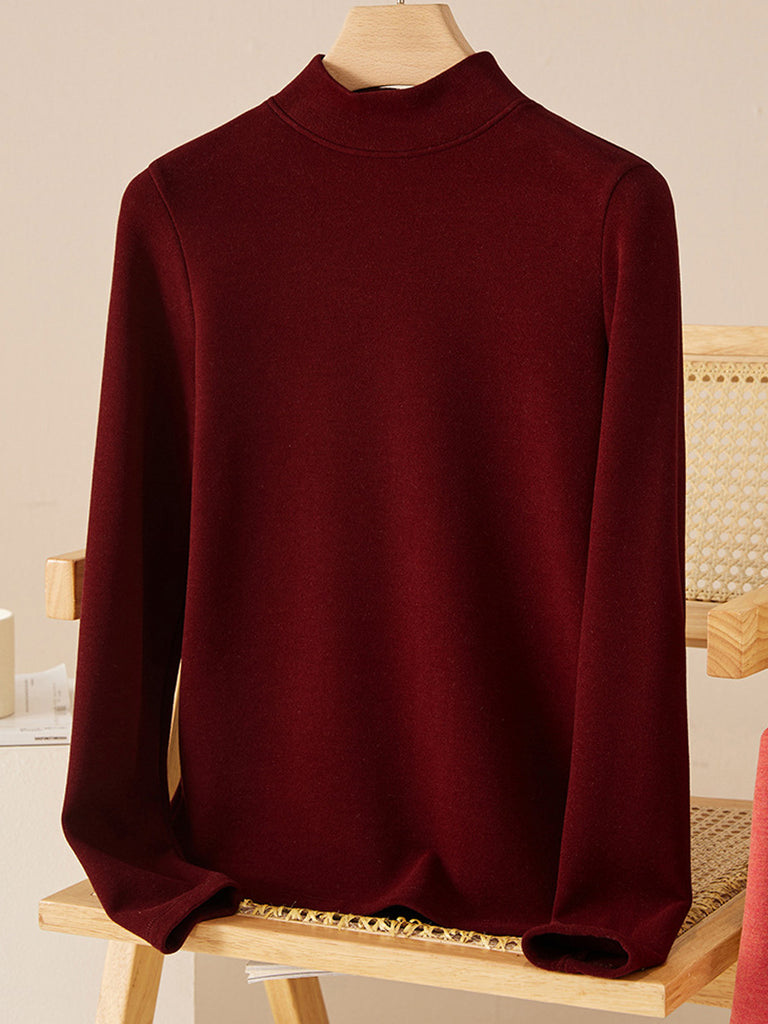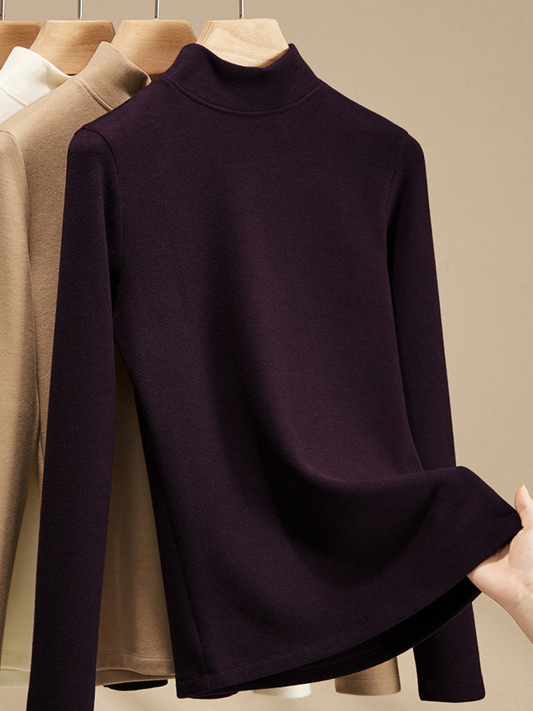Women Vintage Winter Pure Color Half-Turtleneck Base Blouse