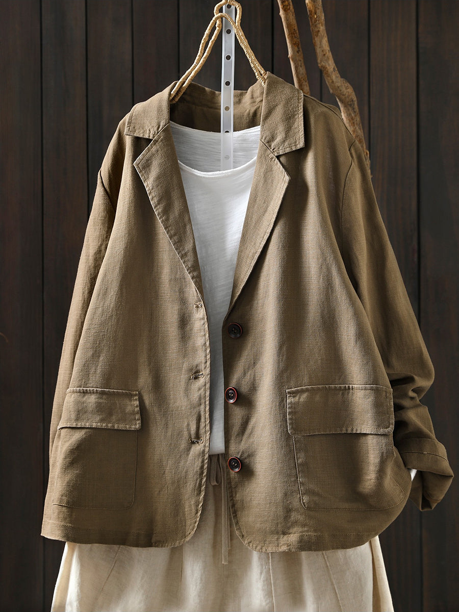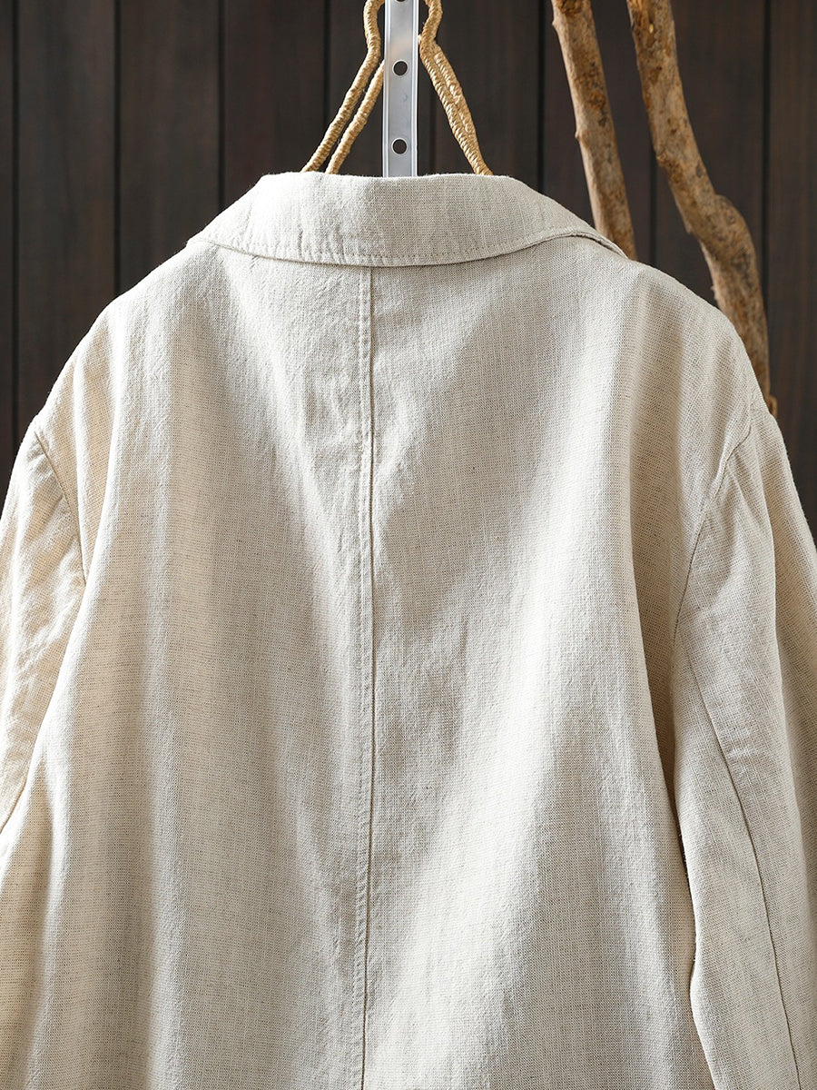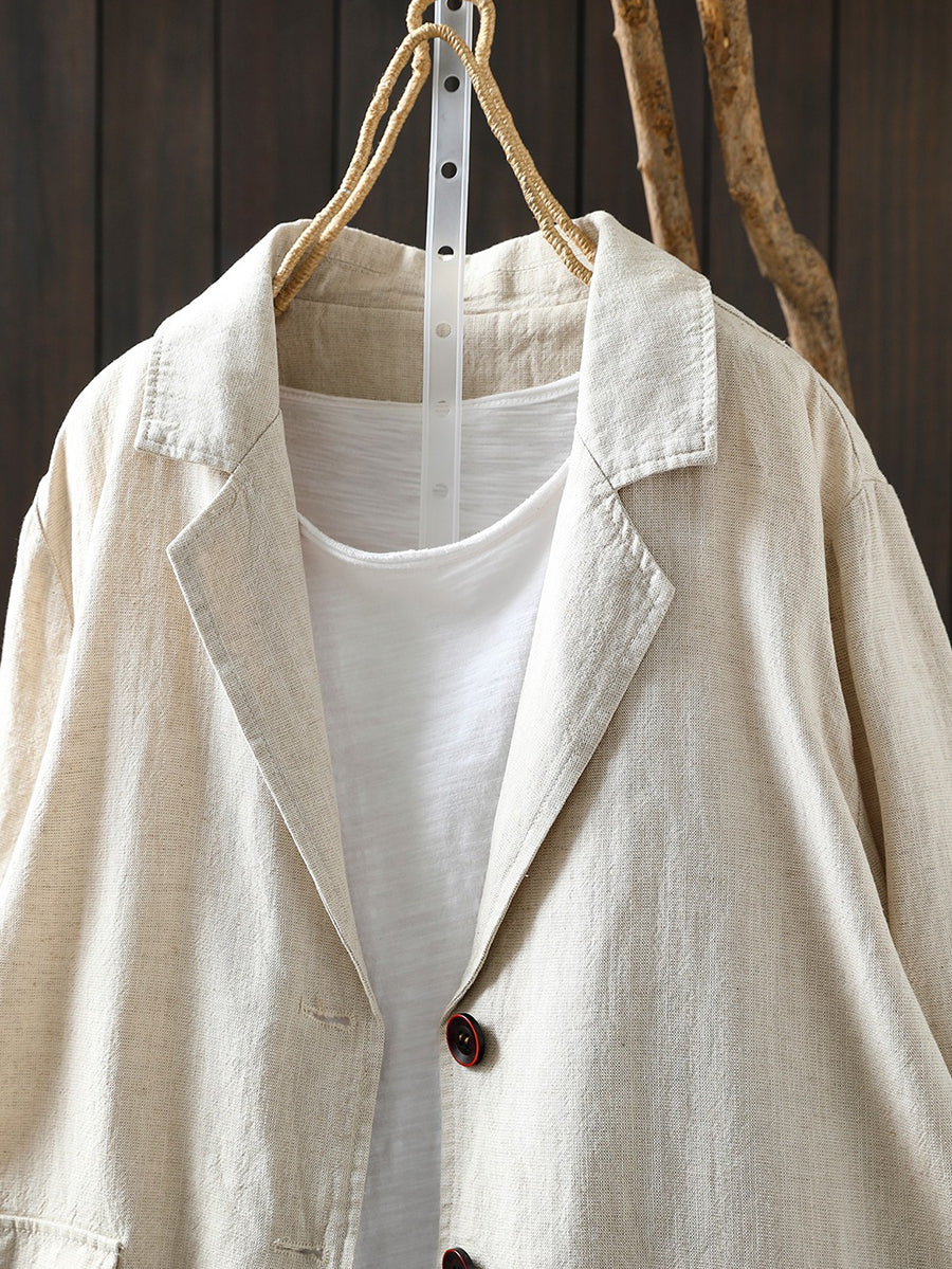 Women Spring Retro 100%Linen Turn-down Collar Coat