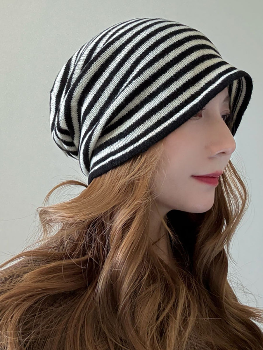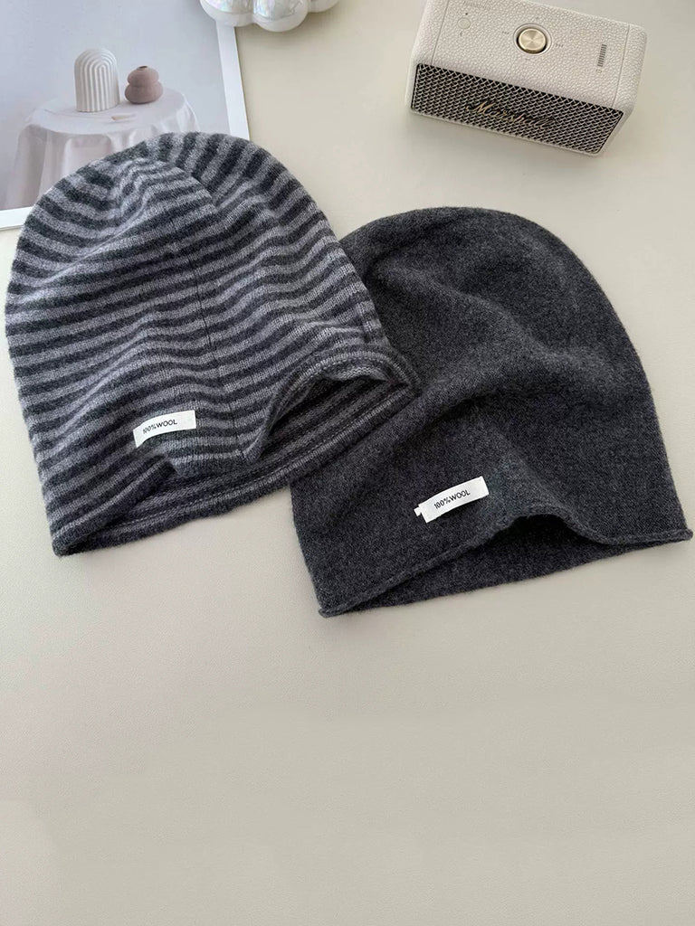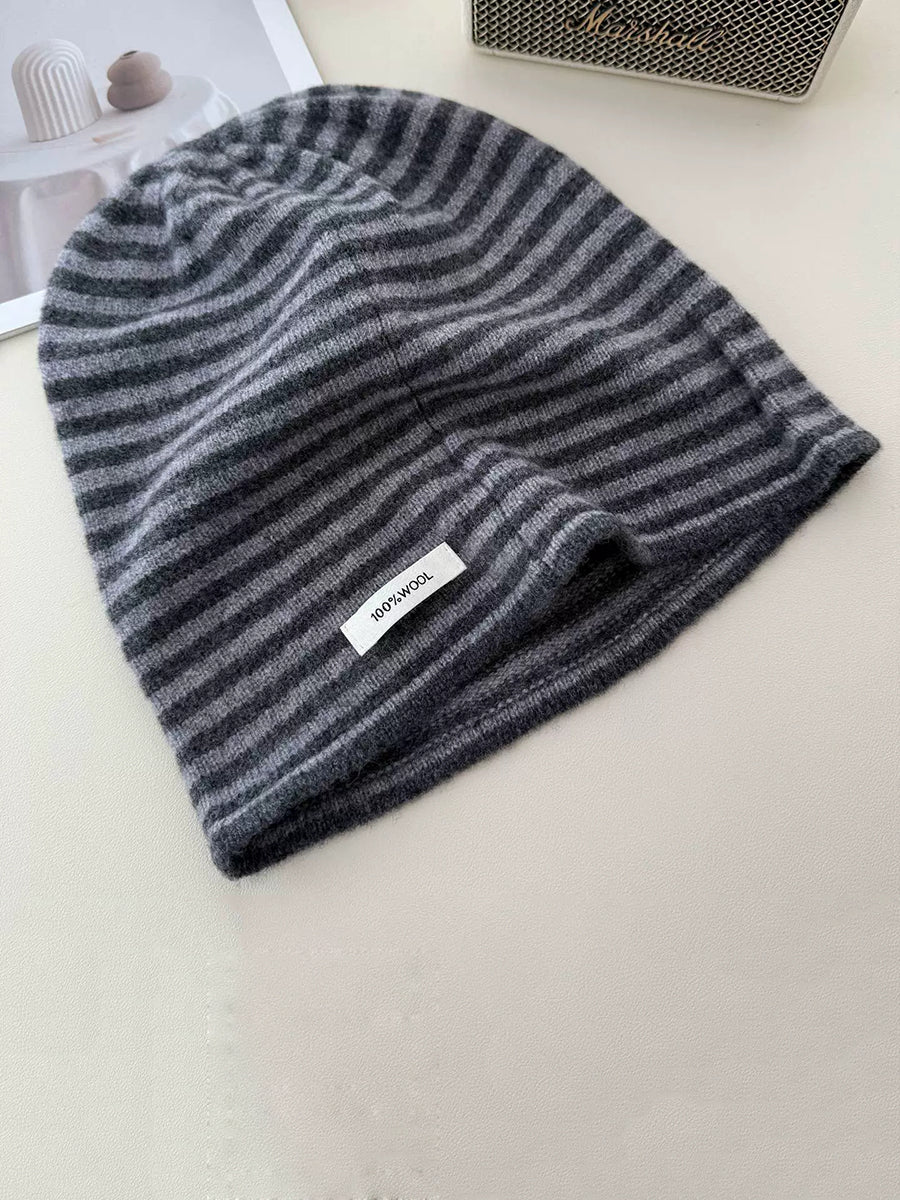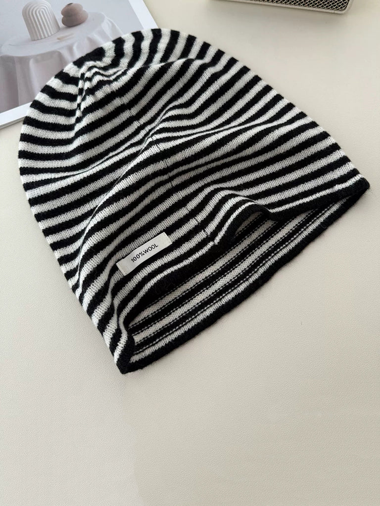 Women Casual Stripe 100%Wool Knitted Hat