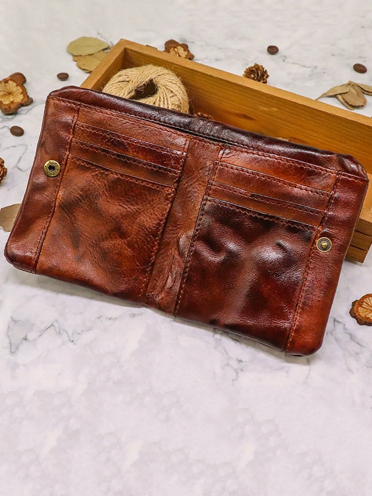 Vintage Pure Color Leather Multifunction Wallet