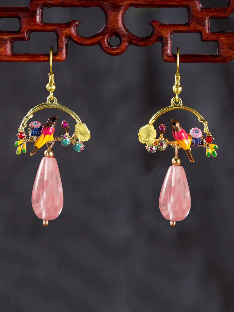 Women Ethnic Glass Bead Copper Cloisonne Earrings