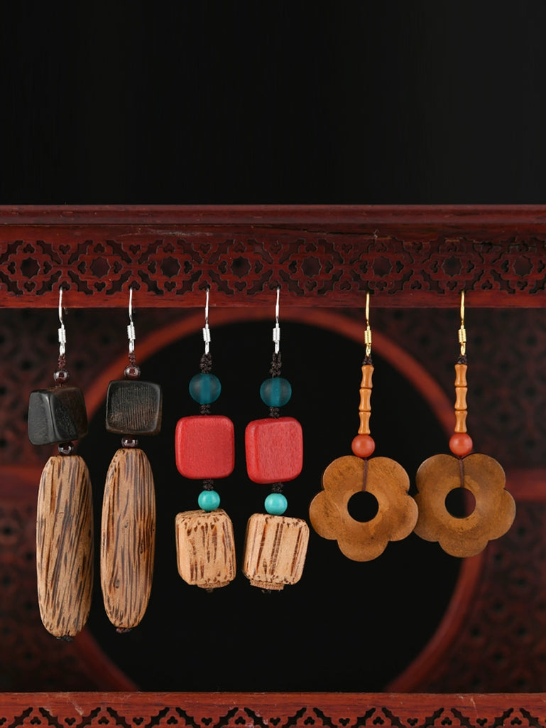 Women Vintage Wooden Pinecone S925Sliver Earrings