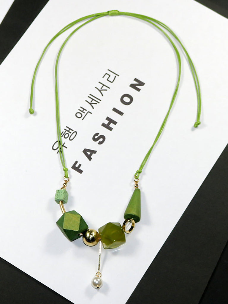Vintage Alloy Leaf Wooden Pandent Necklace