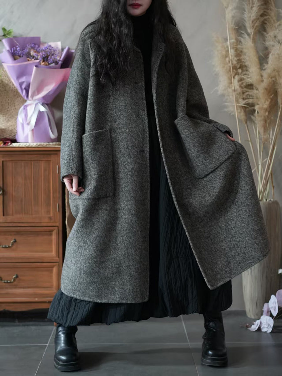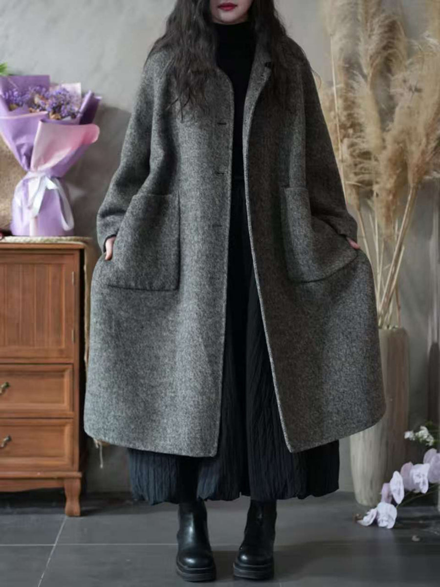 Women Winter Pure Color Turn-down Collar Fleece Overcoat