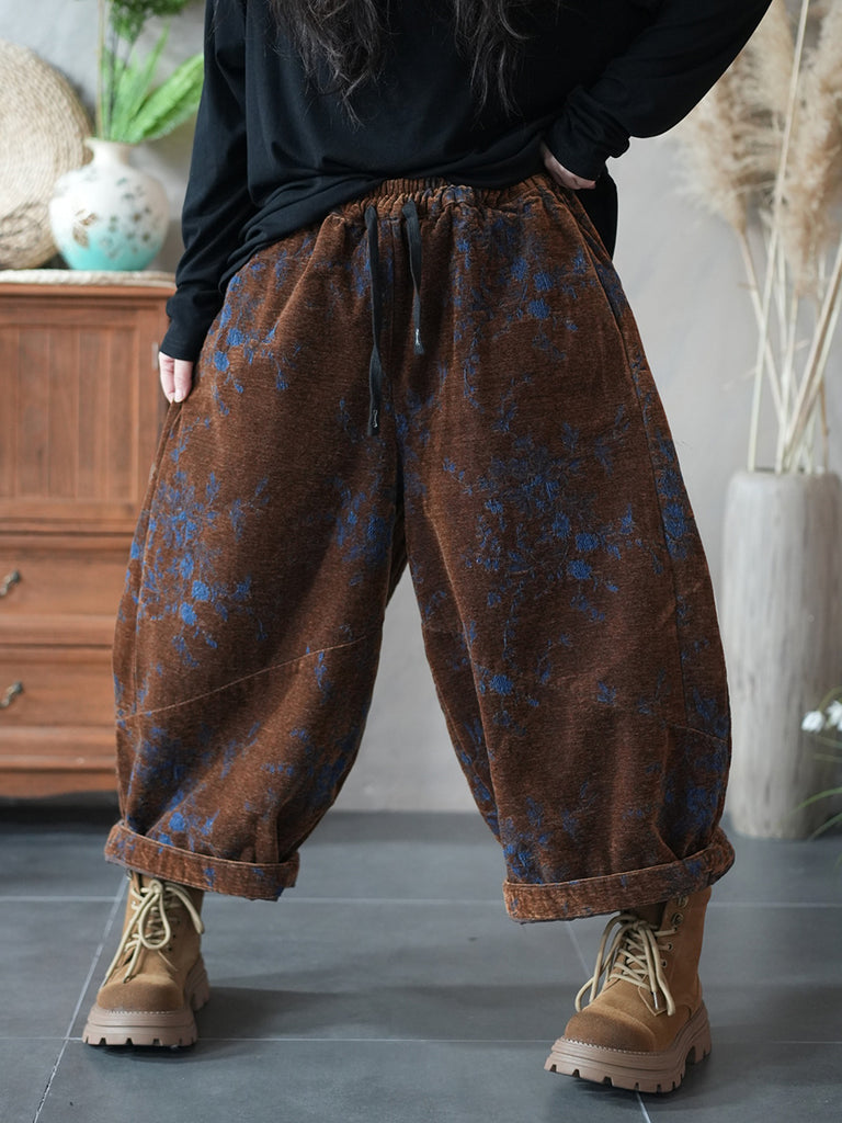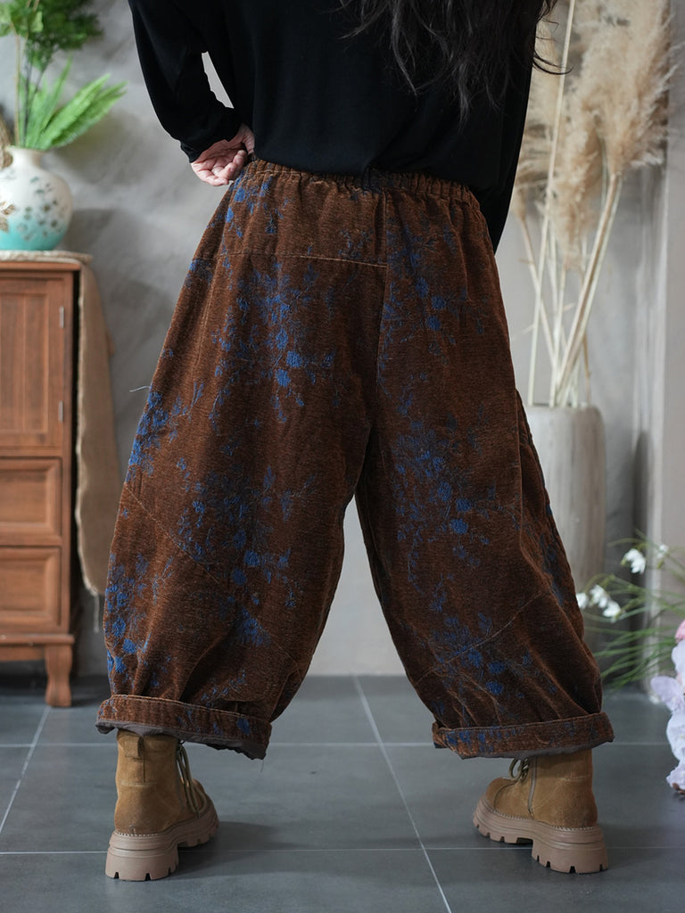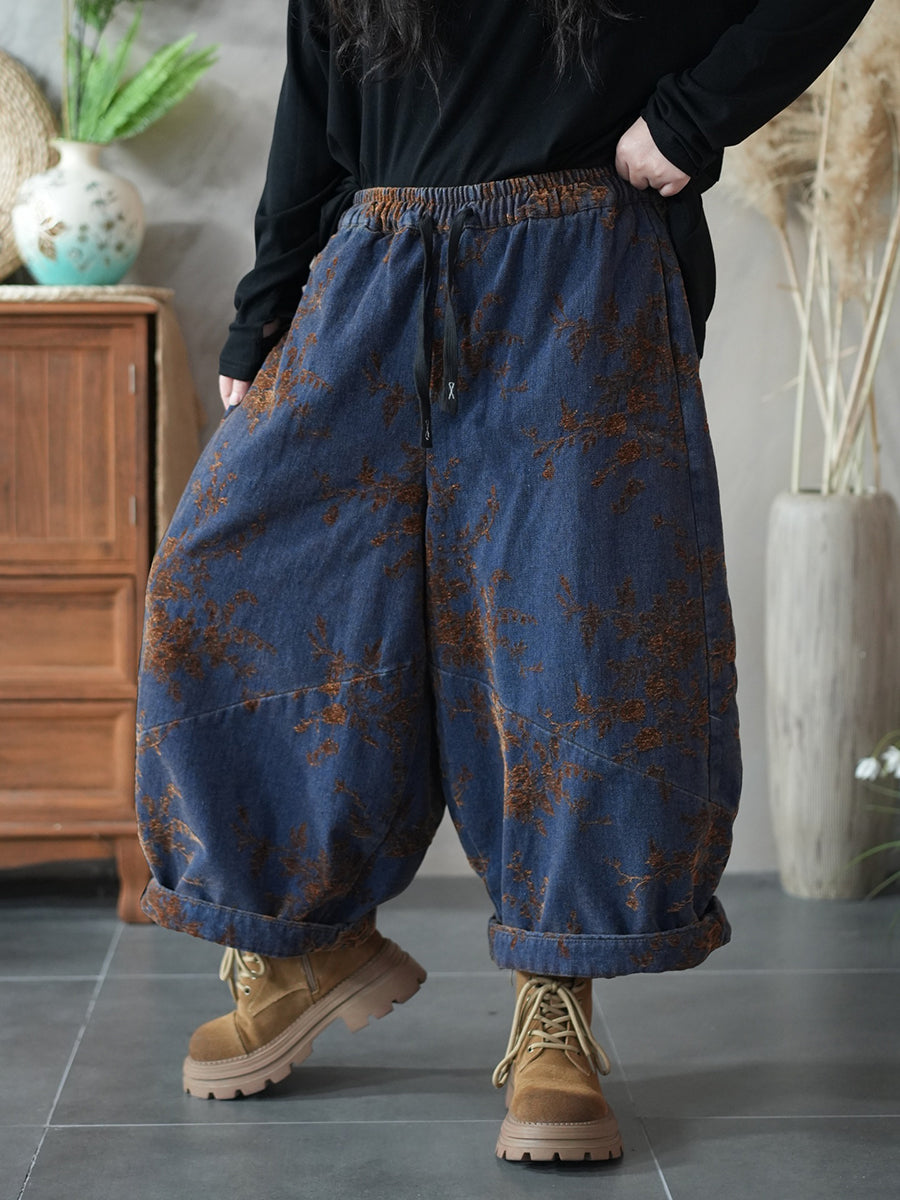 Women Winter Retro Flower Padded Harem Pants