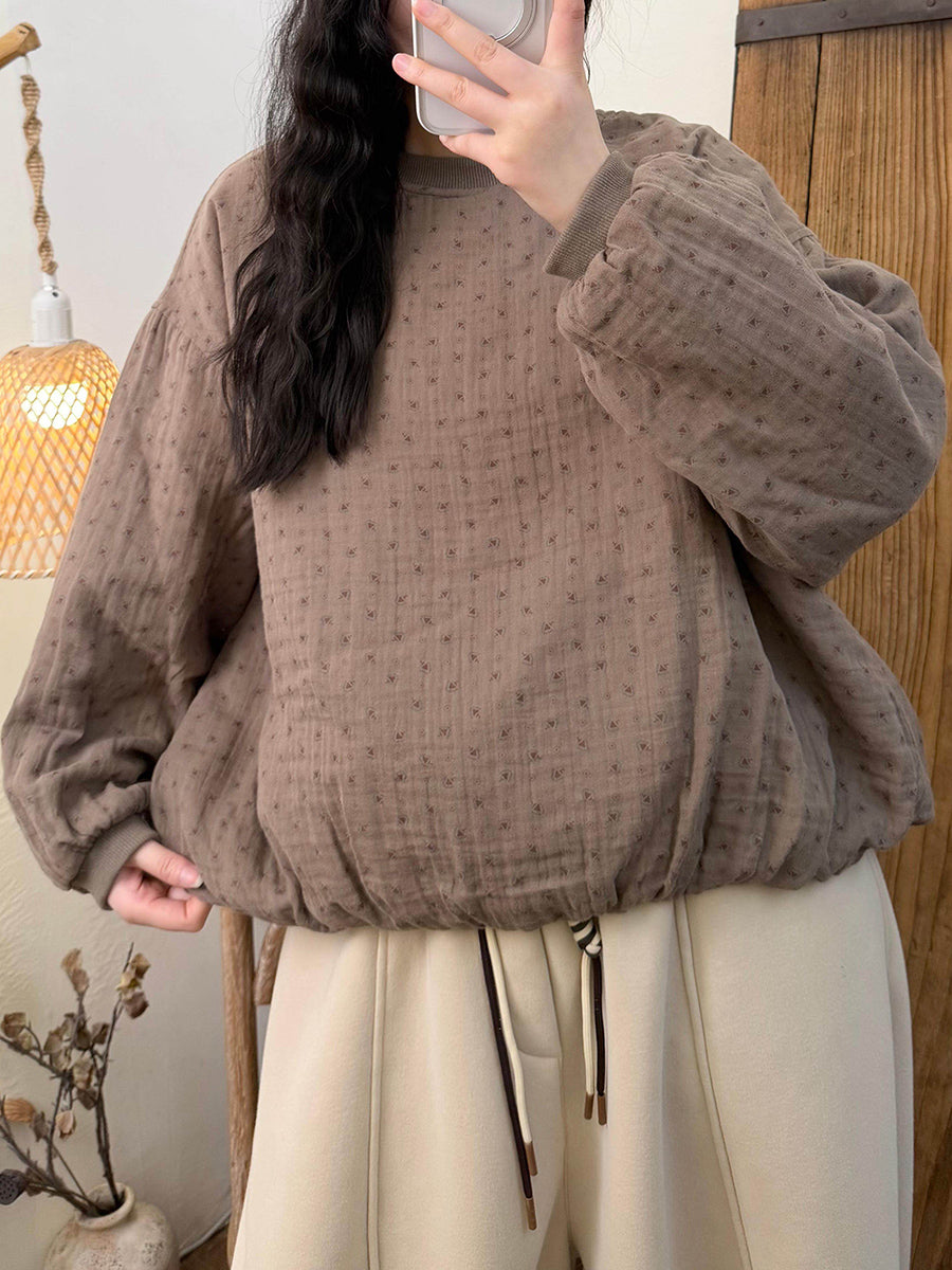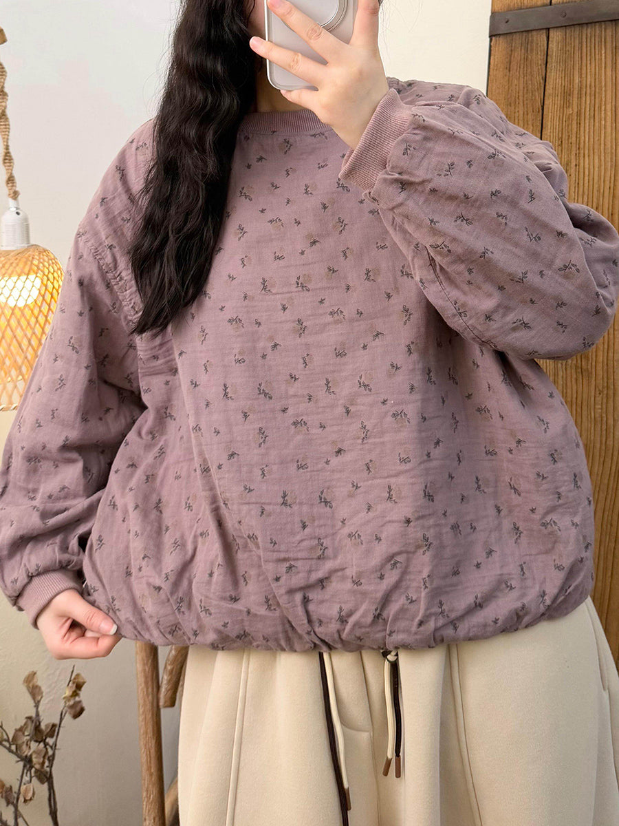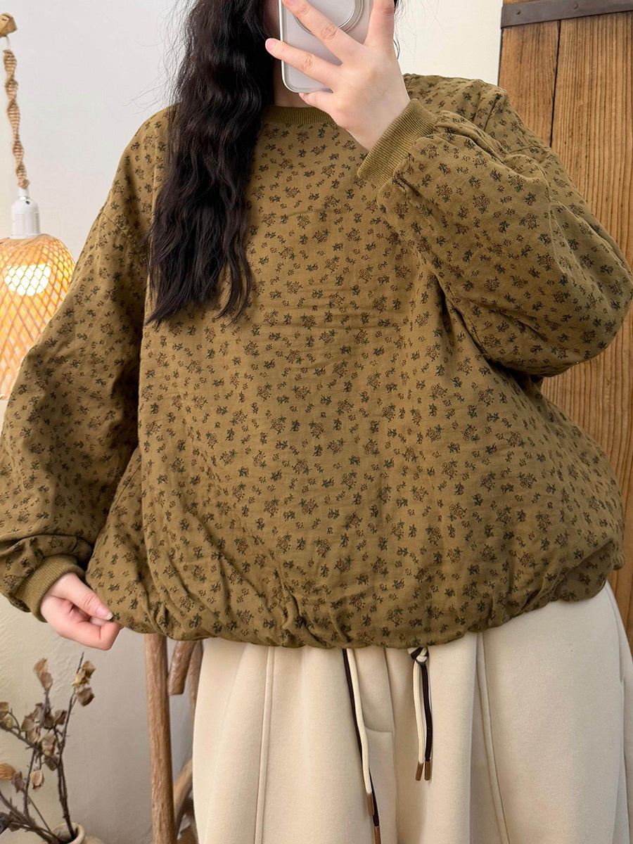 Women Artsy Spring Floral O-Neck Padded Blouse
