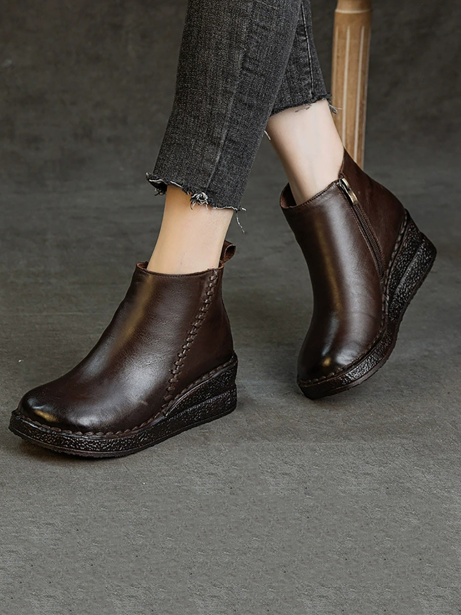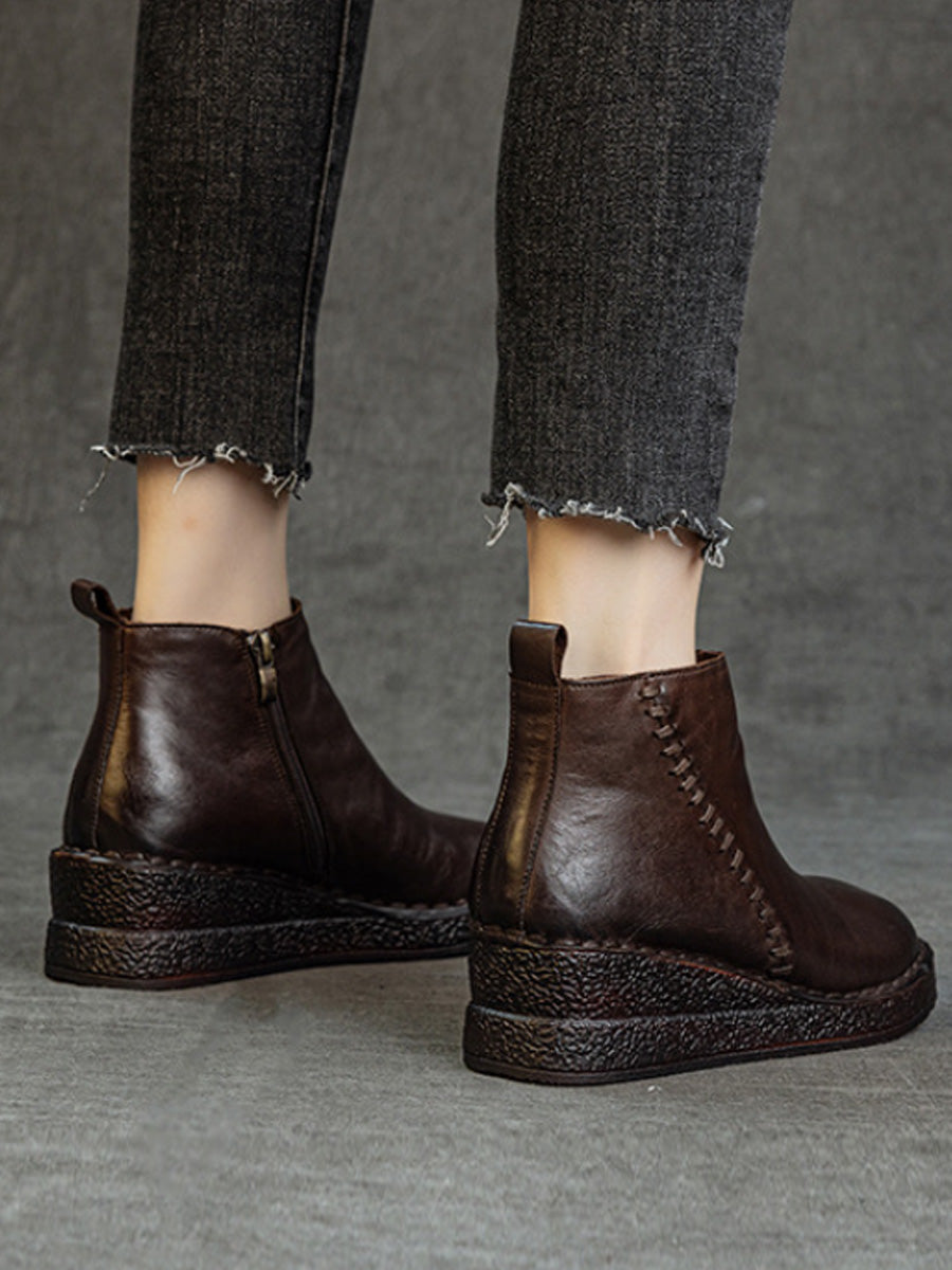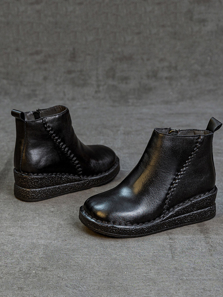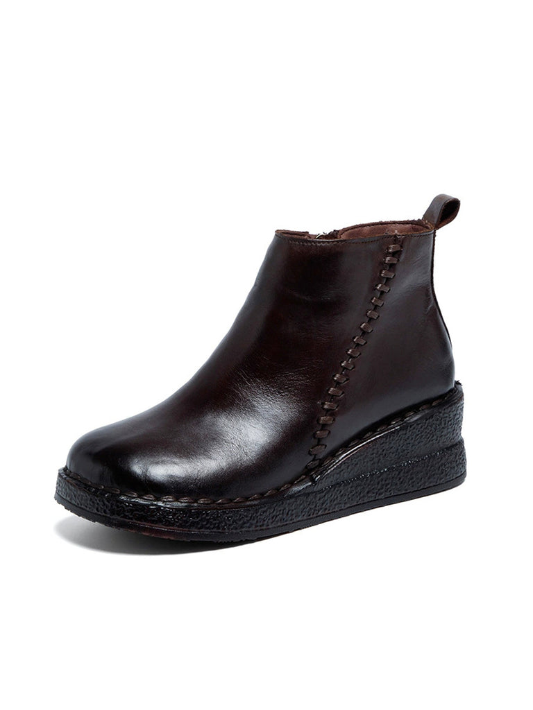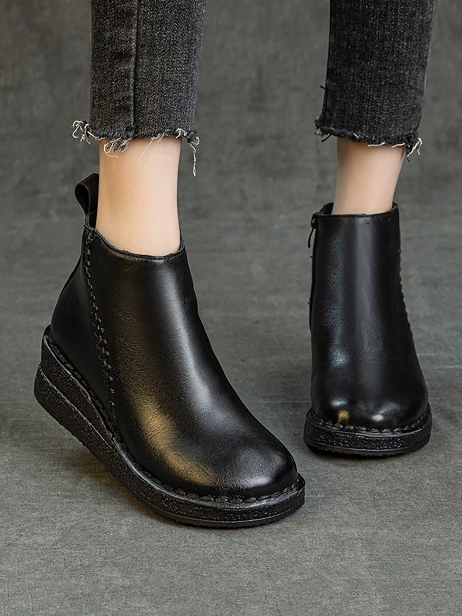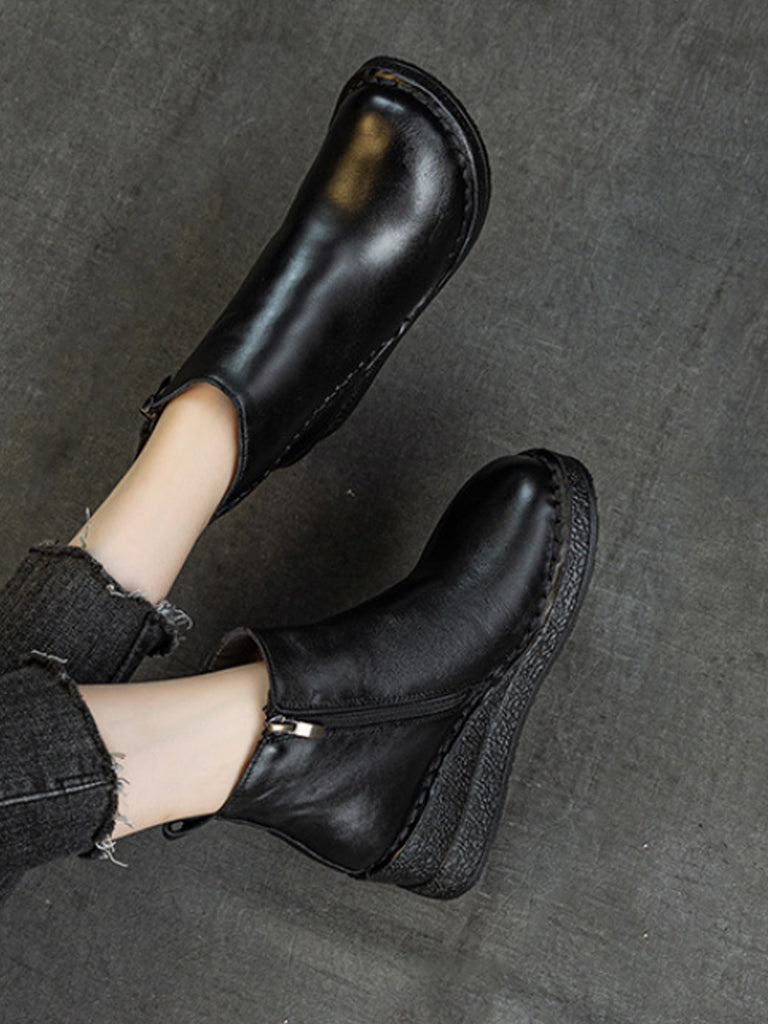 Women Genuine Leather Platform Fleece-lined Ankle Boots