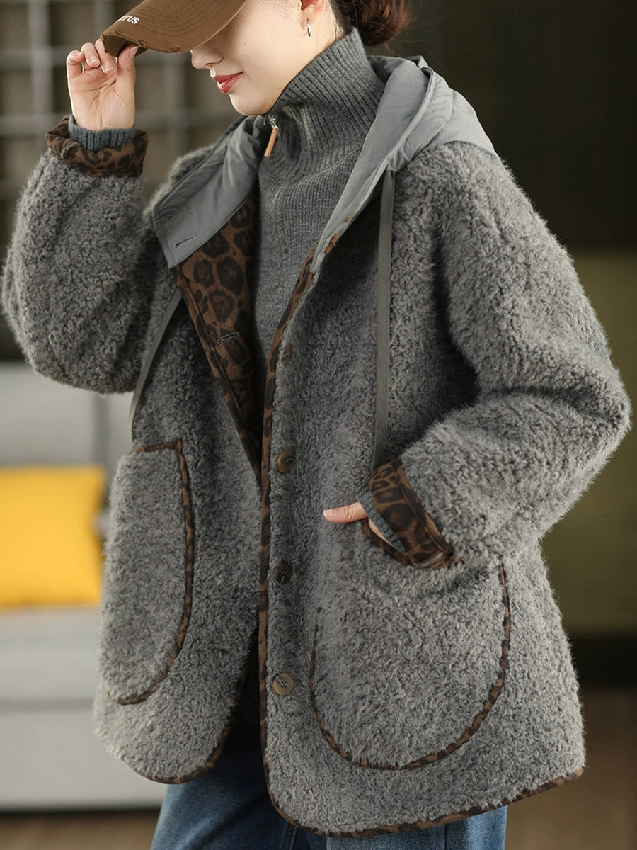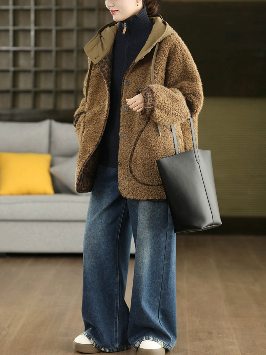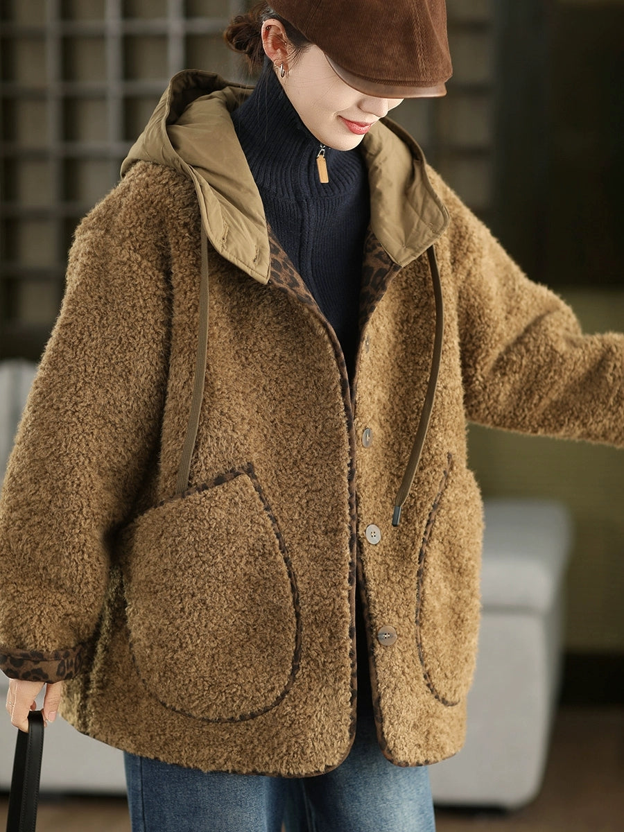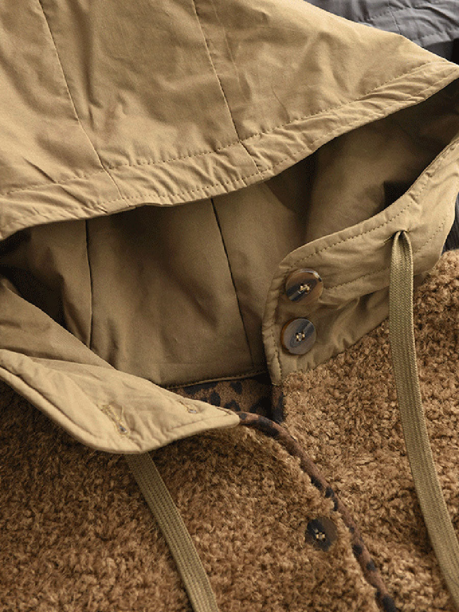 Women Winter Retro Fleece Hooded Coat