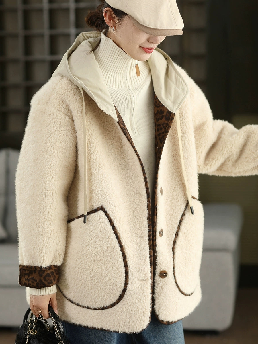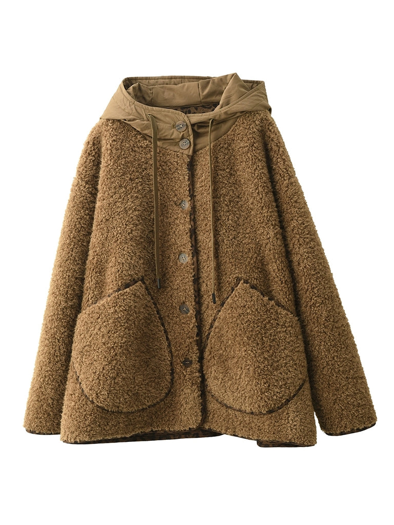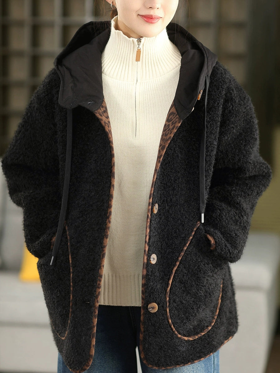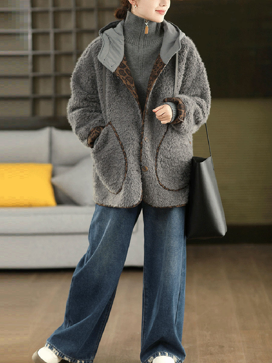 Women Winter Retro Fleece Hooded Coat