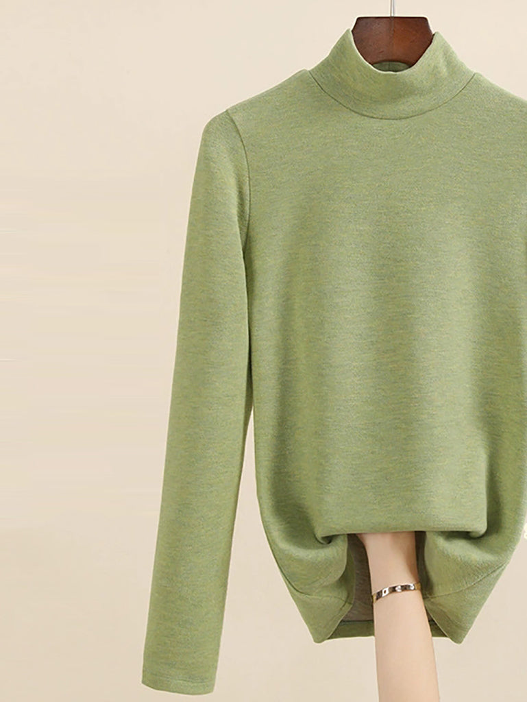 Women Autumn Casual Warm Mid Collar Base Blouse