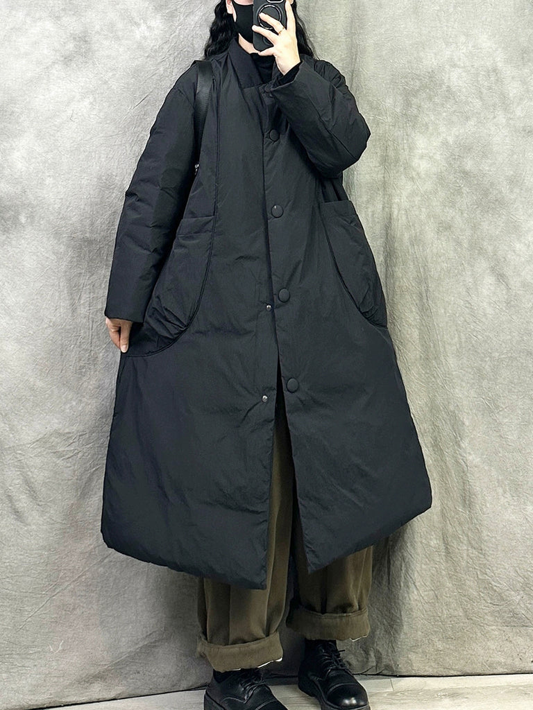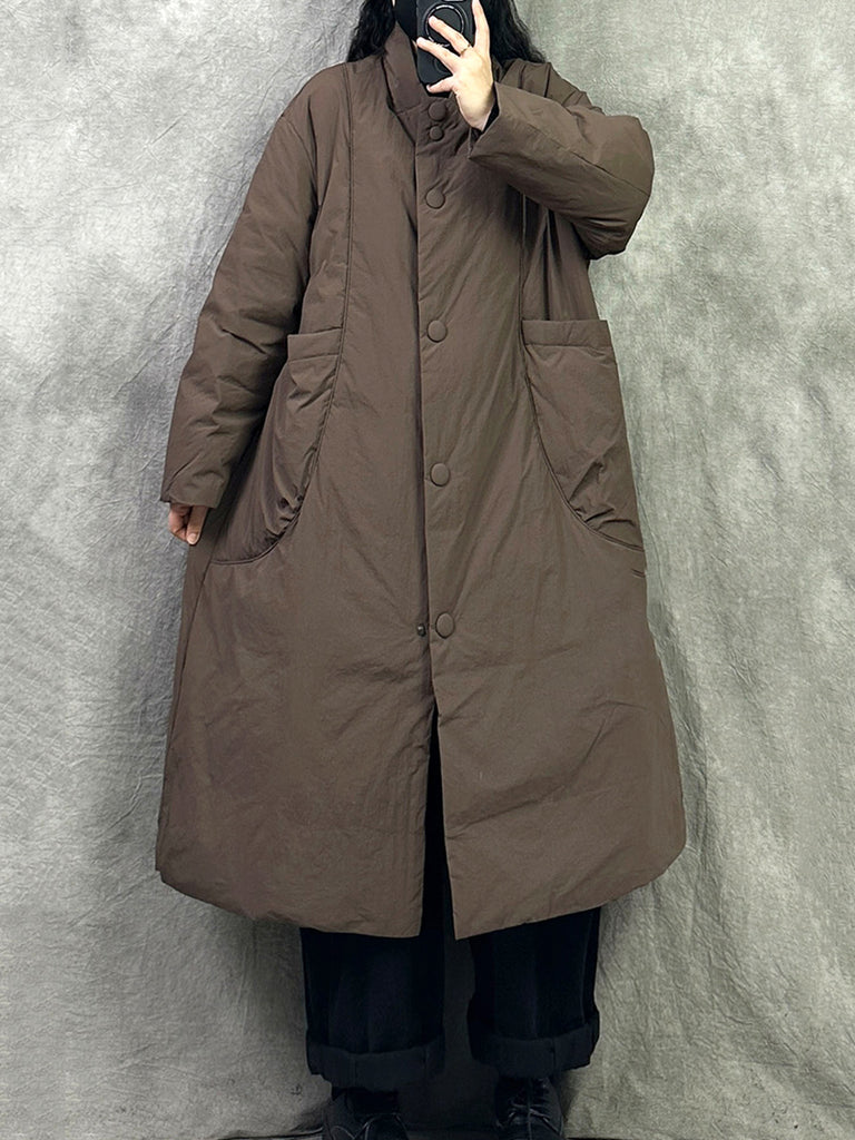 Women Winter Retro Pure Color Stand Collar Padded Coat