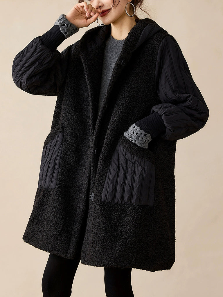 Women Winter Casual Pure Color Hooded Fleece Coat