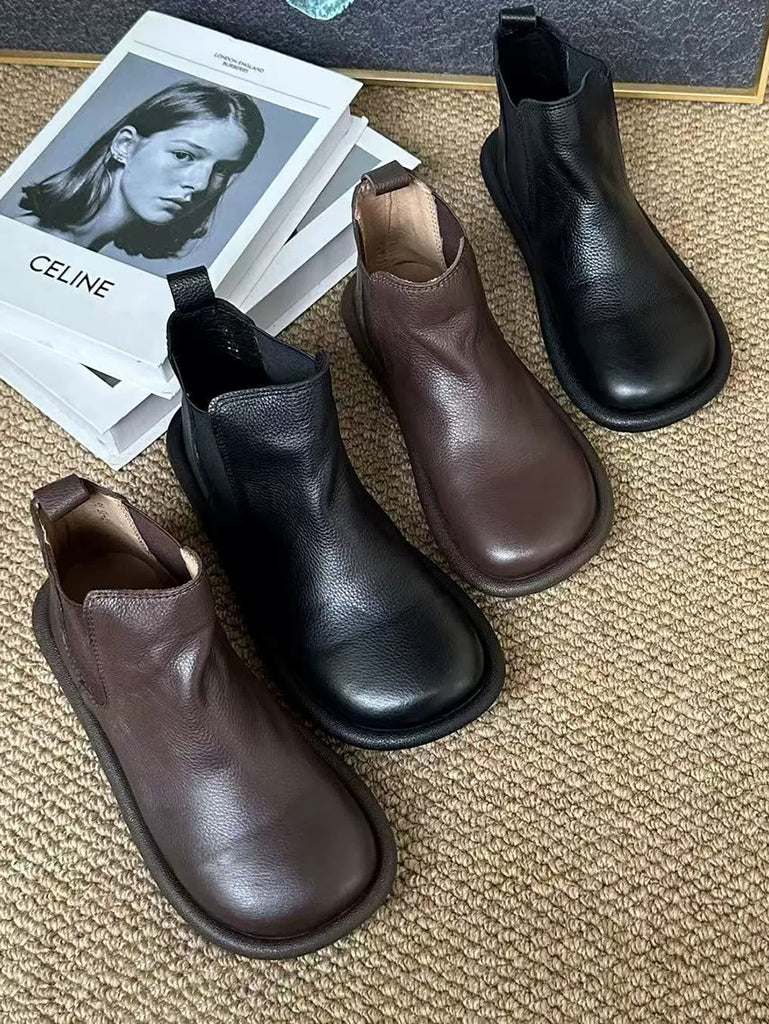 Women Retro Genuine Leather Platform Low-Heel Boots