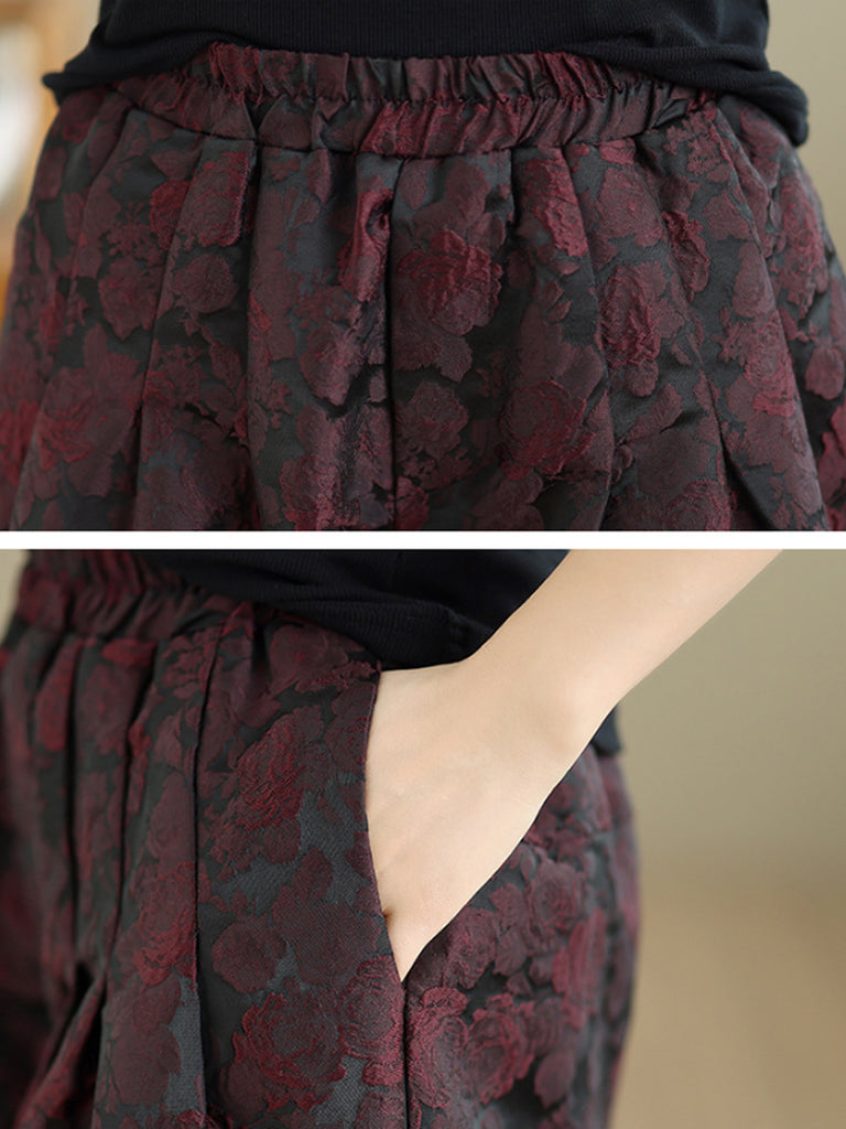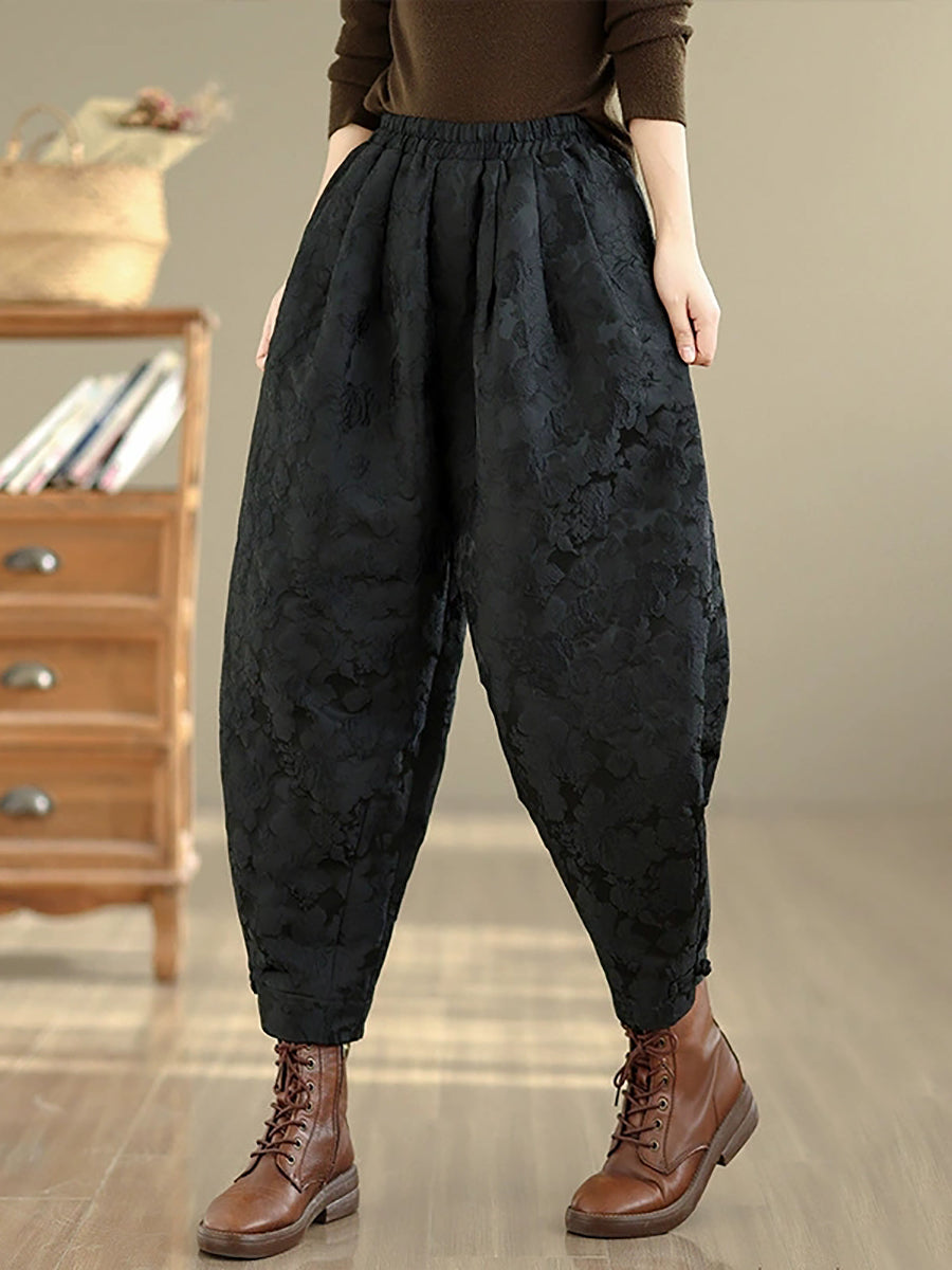 Women Winter Flower Jacquard Fleece-lined Harem Pants