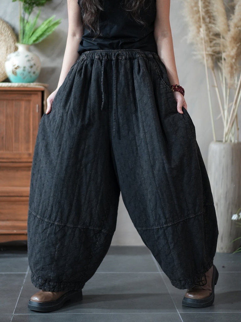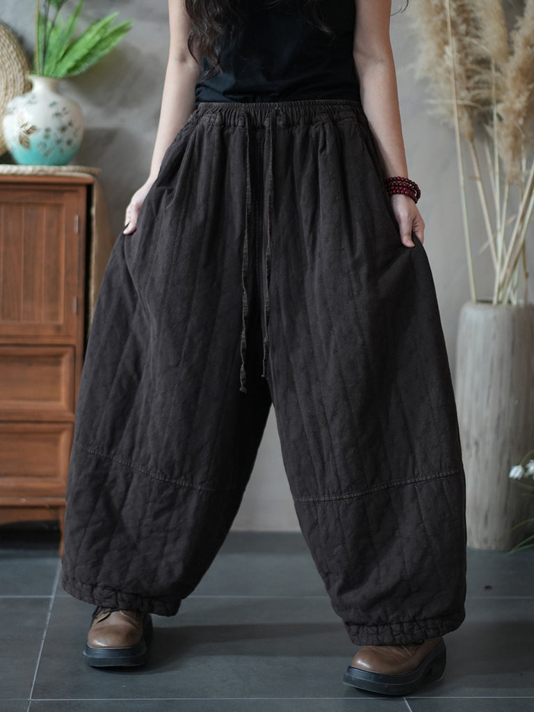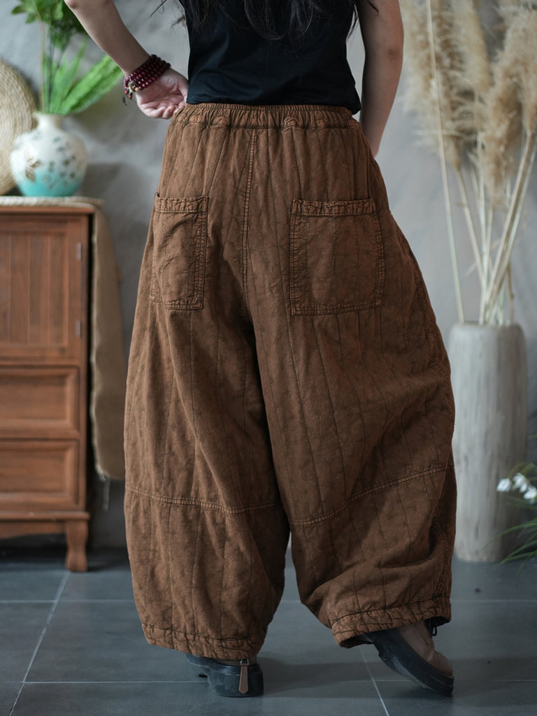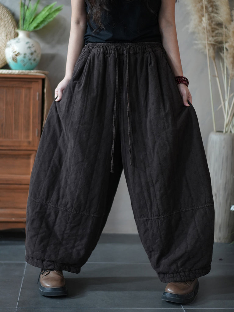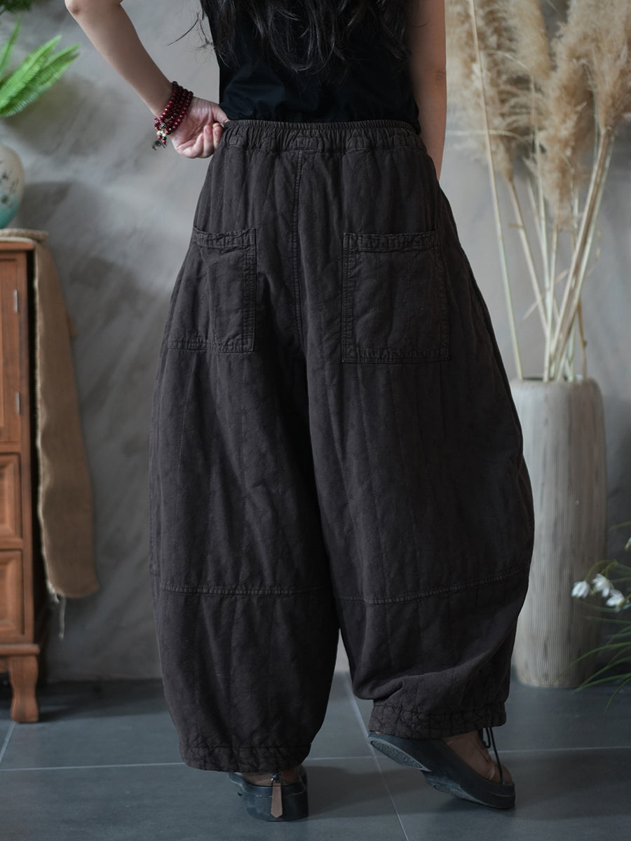 Women Winter Retro Pure Color Linen Bloomers
